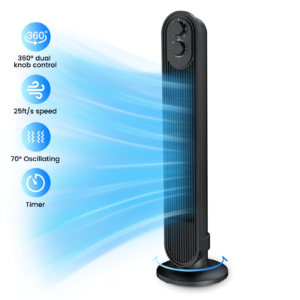 HOMSHADE Tower Fan, 31″ Oscillating Standing Fan for Home, HOMSHADE Floor Fan with 360° Dual Knob Control, 3 Speed, Timer Bladeless Fan for Bedroom Office, Black