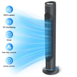 HOMSHADE Tower Fan, 32″ Wide Oscillating Cooling Fan with 3 Speeds 3 Wind Modes ,Timer,Pentatonic Button,Standing Fan for Home,Bedroom & Office