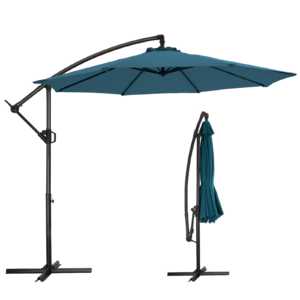 10ft Offset Hanging Market Patio Umbrella with Easy Tilt Adjustment,Polyester Shade,8 Ribs for Backyard,Poolside,Lawn and Garden,Blue