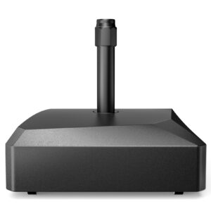 160 lb. heavy-duty mobile umbrella base, 17-inch height design, high-density, high-density polyethylene (HDPE) water-filled material, 5 wheels for mobility, provides solid support