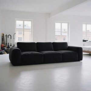21″ Ultra High Backrest Convertible Sofa and Corduroy L Shaped Sectional Couch Bed for Living Room and Office,Black