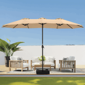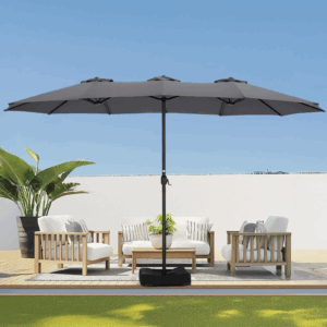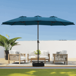 15ft Patio Umbrella with Light and Base Included, Double Sided Outdoor Large Rectangular Patio Umbrella with Crank Handle, for Lawn Garden,Home,Outdoor Activities