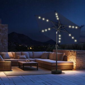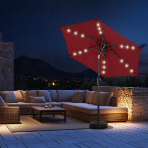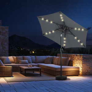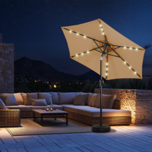 7.5ft Solar Polyester 18 LED Lighted Patio Umbrella with Tilt Adjustment and UV-Resistant Fabric,for Garden,Deck,Backyard,Pool and Beach
