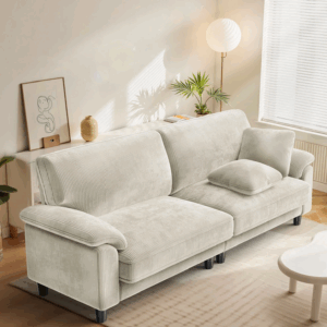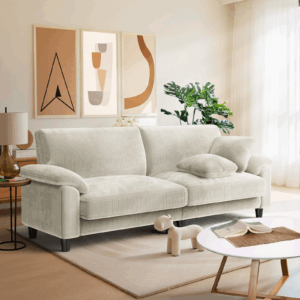 83″ Corduroy Sofa,Loveseat Sofa with Extra Deep Seat Couches ,Comfy Upholstered Couch for Living Room,Tool-Free Setup with 2 Pillows,Beige