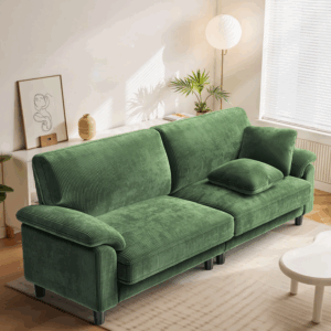 83″ Corduroy Sofa,Loveseat Sofa with Extra Deep Seat Couches ,Comfy Upholstered Couch for Living Room,Tool-Free Setup with 2 Pillows,Green