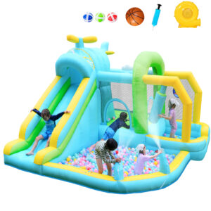 HOMSHADE Inflatable Bounce House Water Slide, 12 in 1 Bounce House for Kids with Bouncer, Climbing Wall, Splash Pool, Deep Pit,Water Sprinker, Ball Dart, Airplane Bouncy 550W Blower for Outdoor Indoor
