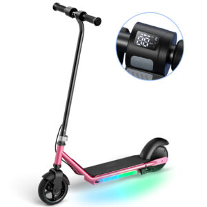 HOMSHADE Electric Scooter for Kids Aged 6-12, LED Display, 3 Speeds, Max 10mph, Magnetic Charging, 150W Motor, Colorful Lights — Pink
