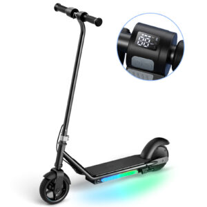 HOMSHADE Electric Scooter for Kids Aged 6-12, LED Display, 3 Speeds, Max 10mph, Magnetic Charging, 150W Motor, Colorful Lights — Black