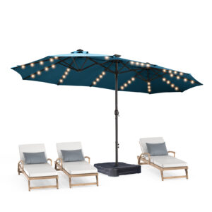 13ft Patio Umbrella with Light and Base Included, Double Sided Outdoor Large Rectangular Patio Umbrella with Crank Handle, for Lawn Garden,Home,Outdoor Activities