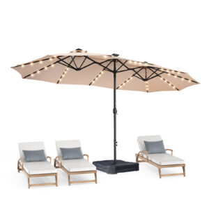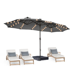 13ft Patio Umbrella with Light and Base, Double Sided Outdoor Large Rectangular Patio Umbrella with Crank Handle, for Lawn Garden,Home,Outdoor Activities