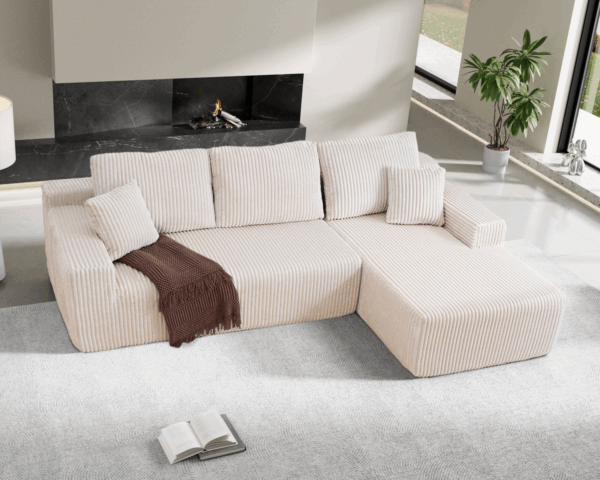107″ Oversized Modular Right Sectional Couches For Living Room, L-Shaped Cloud Sofa Couch With Corduroy Fabric,Comfy Couch With Deep Seat,No Assembly,Beige