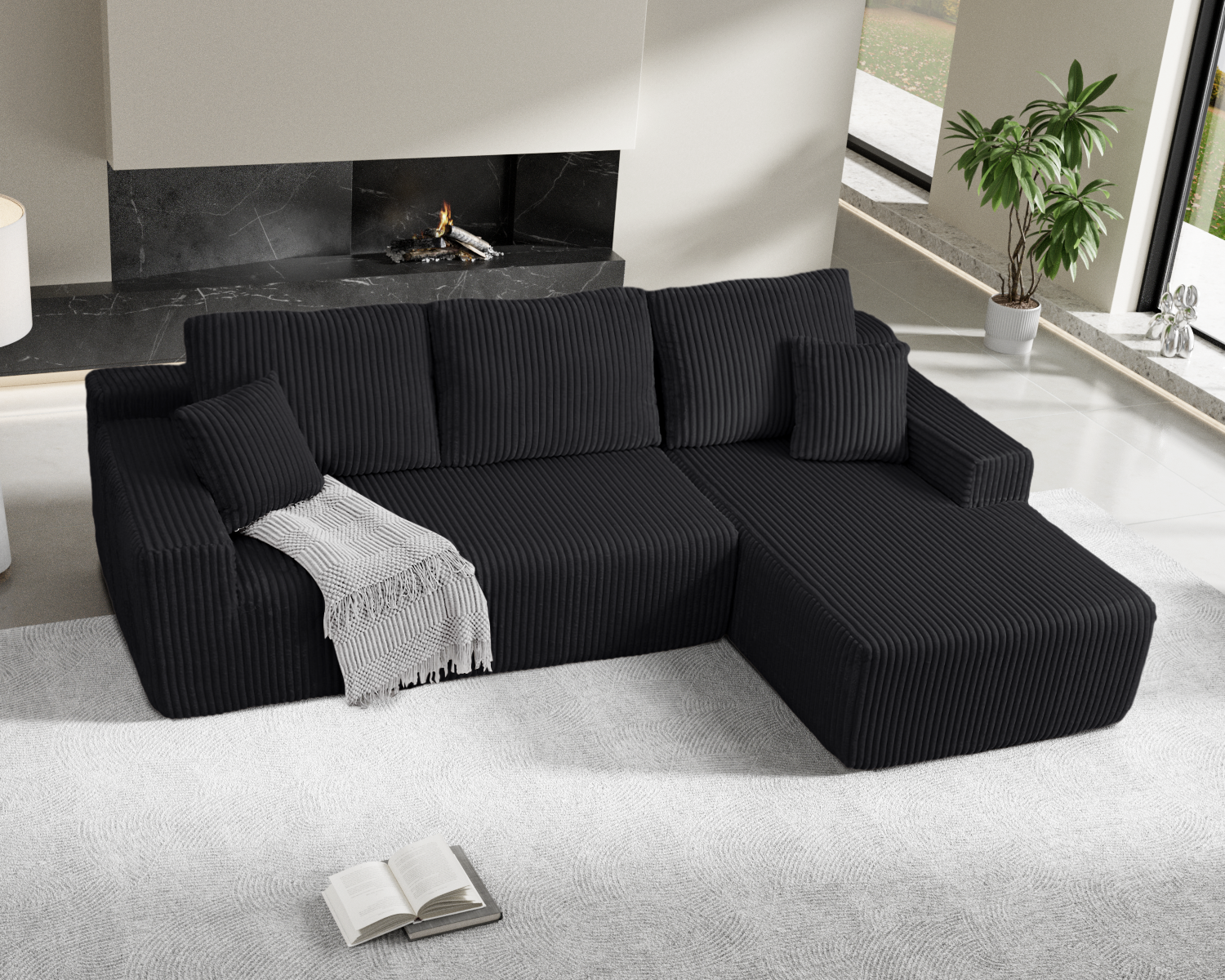107″ Oversized Modular Right Sectional Couches For Living Room, L-Shaped Cloud Sofa Couch With Corduroy Fabric,Comfy Couch With Deep Seat,No Assembly,Black