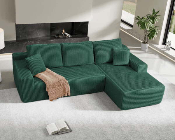 107″ Oversized Modular Right Sectional Couches For Living Room, L-Shaped Cloud Sofa Couch With Corduroy Fabric,Comfy Couch With Deep Seat,No Assembly,Green