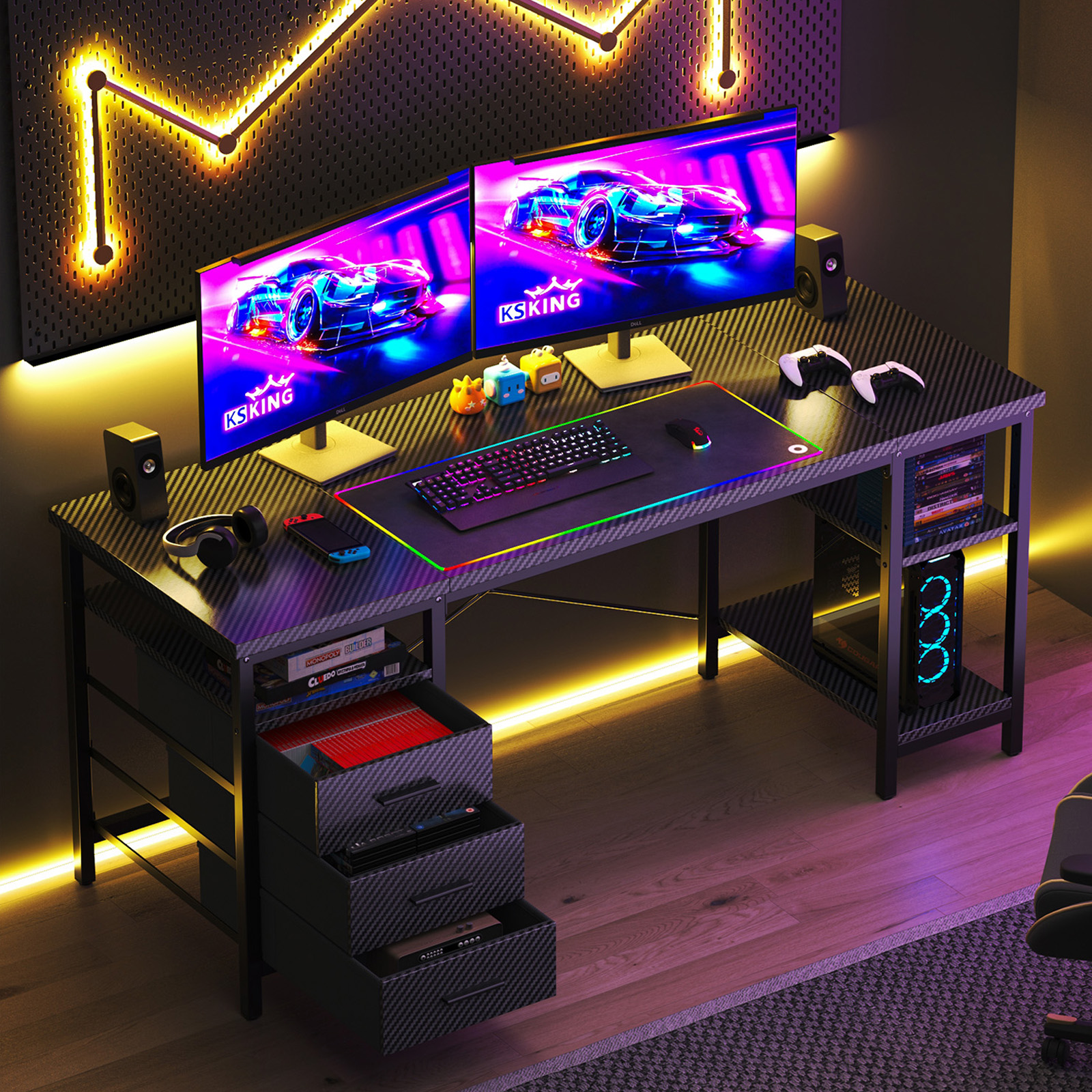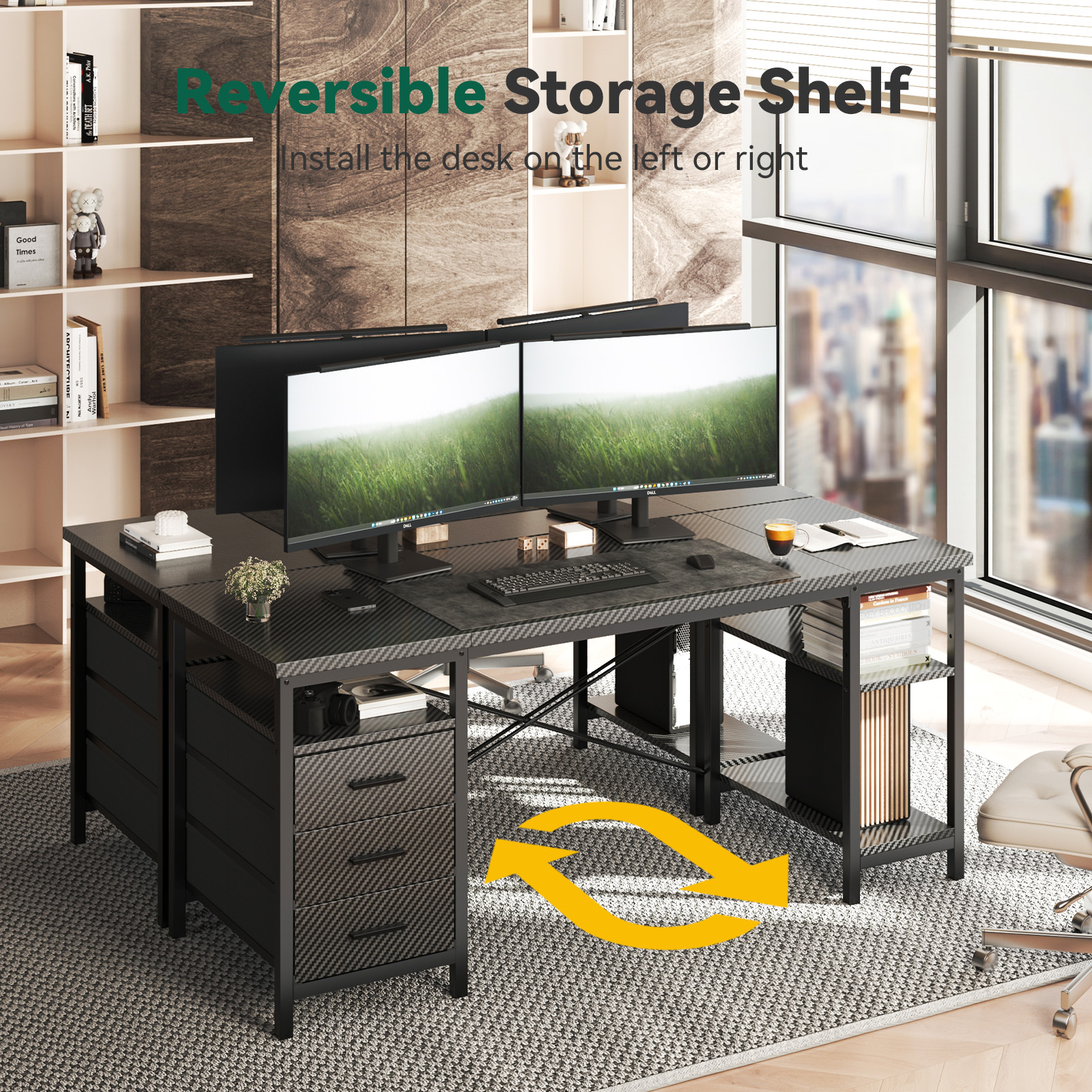 【Reversible Storage Shelves】The drawer cabinet and side-mounted shelf can be freely installed on either the left or right side of the desktop, perfectly adapting to different room layouts and personal usage habits.