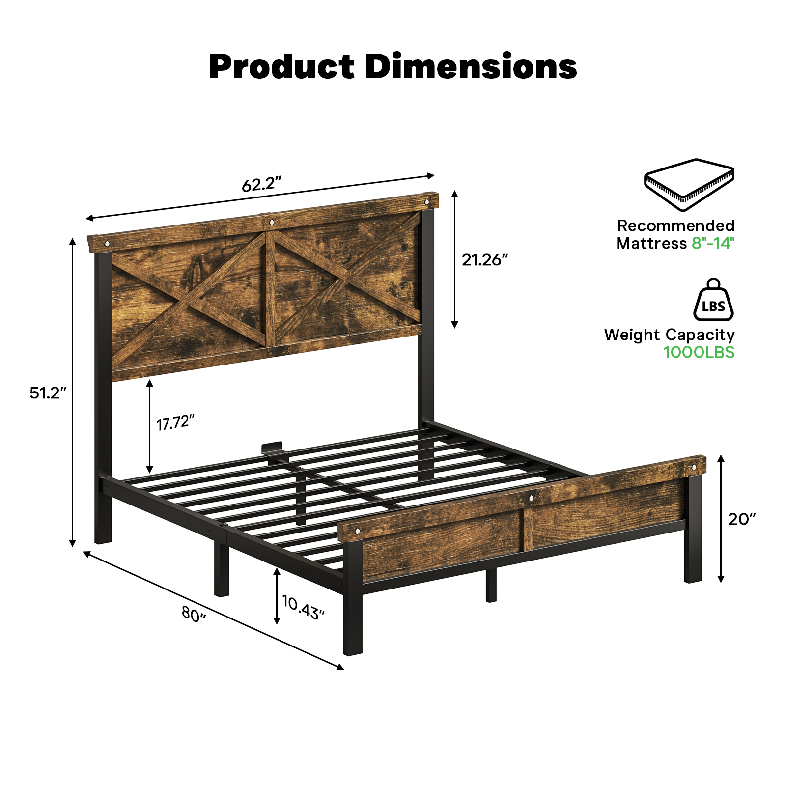 HOMRELEXA Farmhouse X-Frame Bed with Headboard and Footboard, Queen Size Bed Frame, No Box Spring Needed, Brown