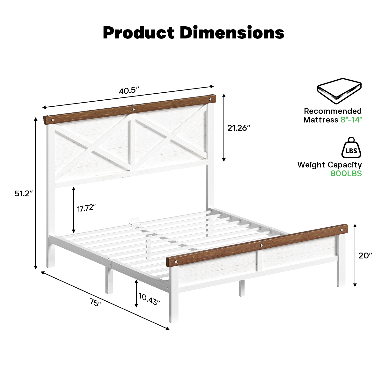 This farmhouse-inspired bed frames are expertly crafted from premium iron and solid wood for outstanding sturdiness and long-term stability. These bed frames come with silent cotton padding to ensure a completely squeak-free, quiet sleep every night. Featuring an elegant X-frame design, smooth white finish, and delicate woodgrain details, the bed frames effortlessly blend rustic warmth with modern farmhouse style, elevating any bedroom decor. Pre-drilled holes and clear instructions make the bed frames incredibly easy to assemble. The wear-resistant, pre-treated surface prevents warping and scratches, so these bed frames stay durable and beautiful with minimal care. Stylish, silent, and reliable, these bed frames are the perfect upgrade for your bedroom.