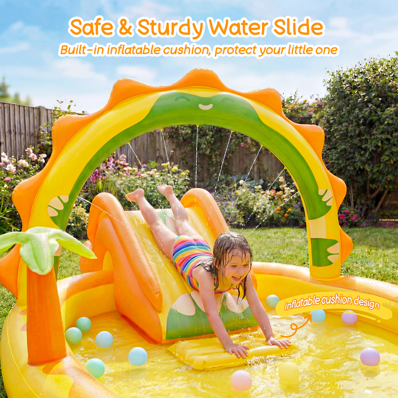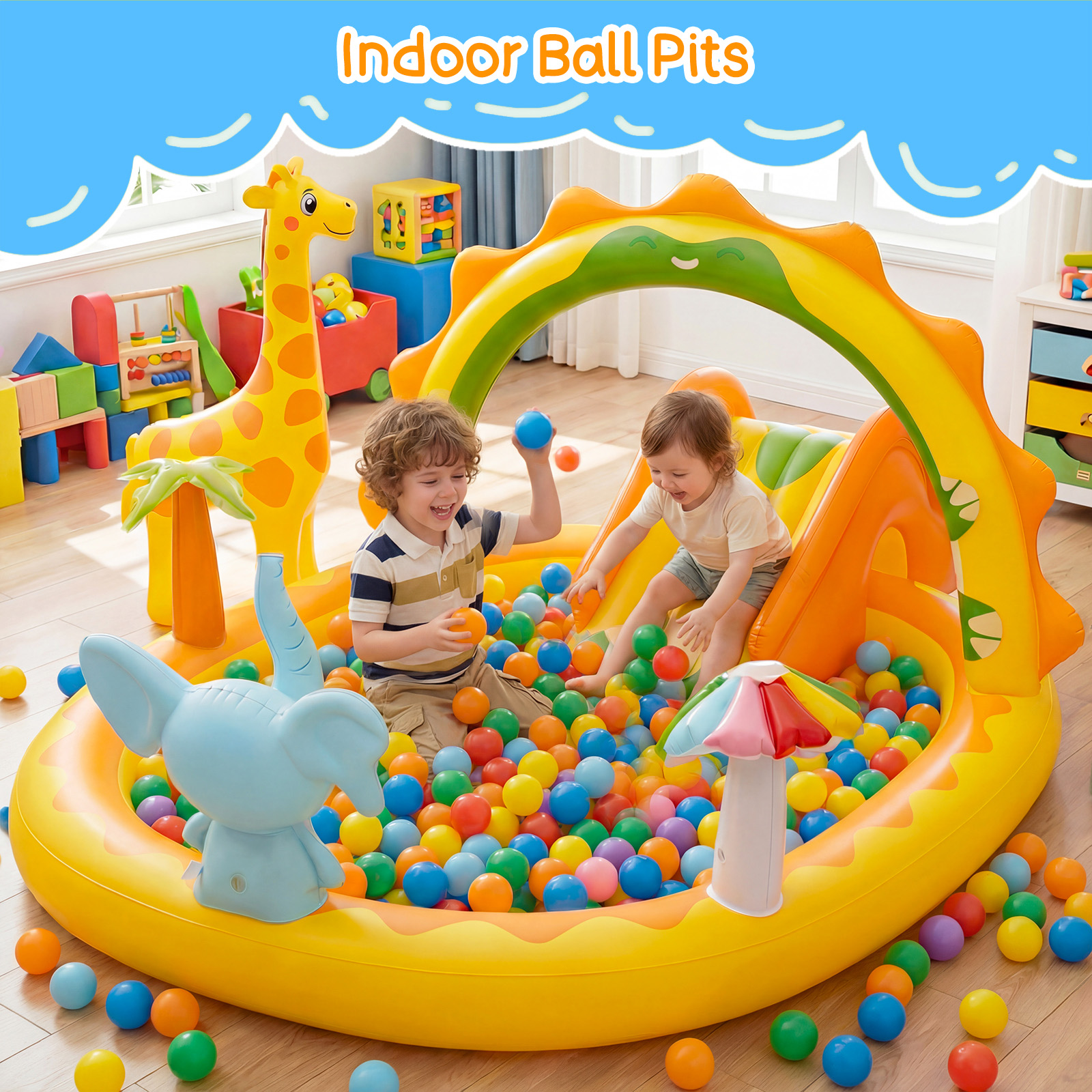 The inflatable Pool, a versatile play center pool and adorable kiddie pool, combines fun and safety, bringing your child a whole summer of joy! The cute giraffe-themed design catches kids’ attention instantly, paired with an elephant trunk water sprayer that sprays gentle water, easily creating an exclusive safe water park at home. Suitable for both indoor and outdoor use, this play center pool fits perfectly in backyards, lawns and living rooms, allowing kids to play in water happily on both rainy and sunny days. Equipped with a safe and stable inflatable slide, our inflatable pool is made of thickened material with soft cushions to fully protect your child. Crafted from BPA-Free thickened PVC material, kiddie pool is non-toxic, odorless, wear-resistant and durable, providing a safe and healthy water play environment for your little one.