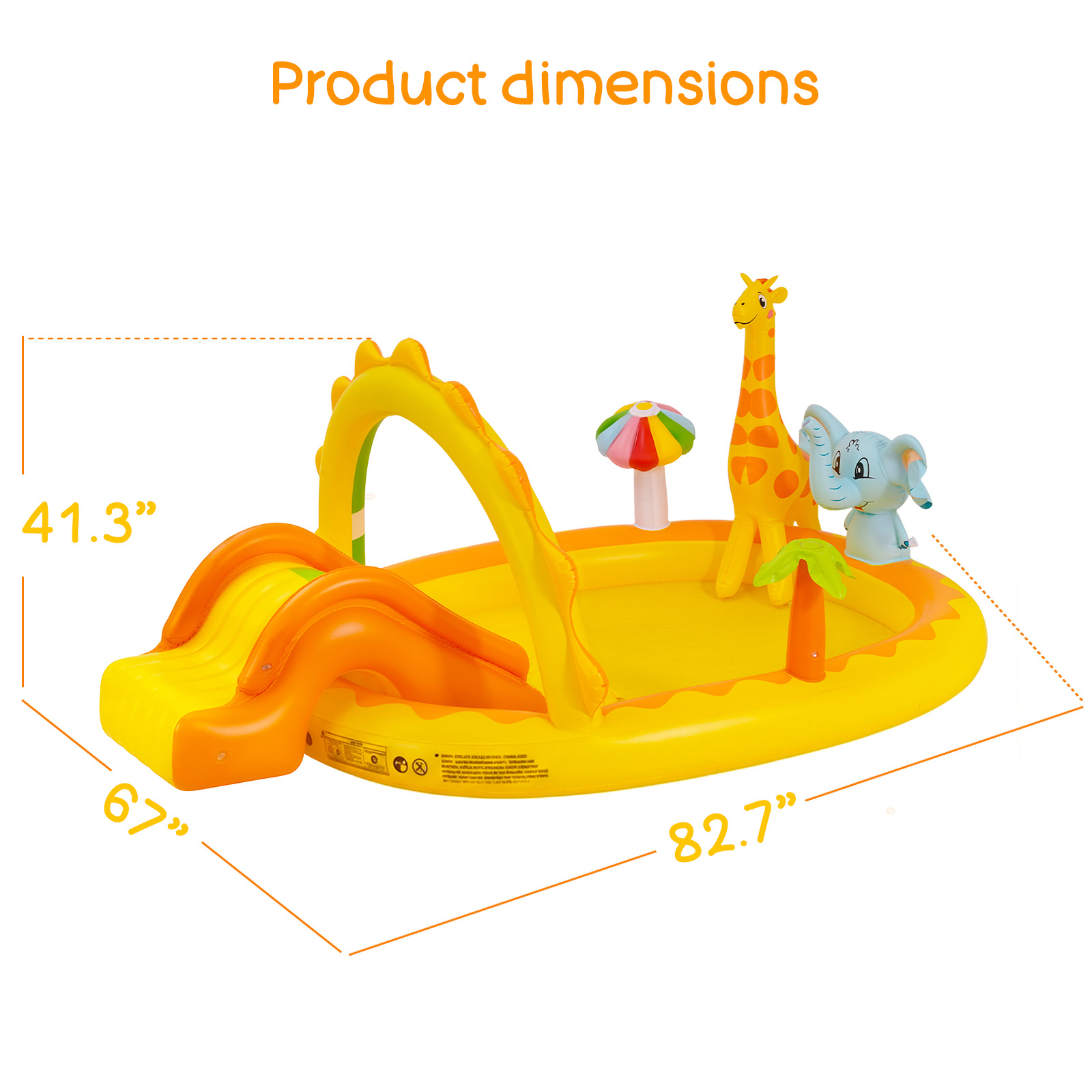 Homrelexa Inflatable Pool Giraffe Play Center with Slide & Elephant Sprinkler, Outdoor Kiddie Pool, Age 2+, 82.7” x 67” x 41.3”