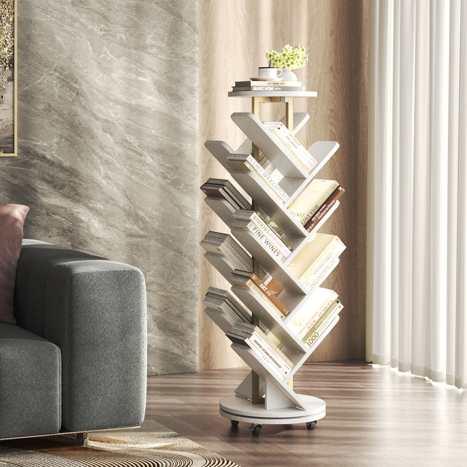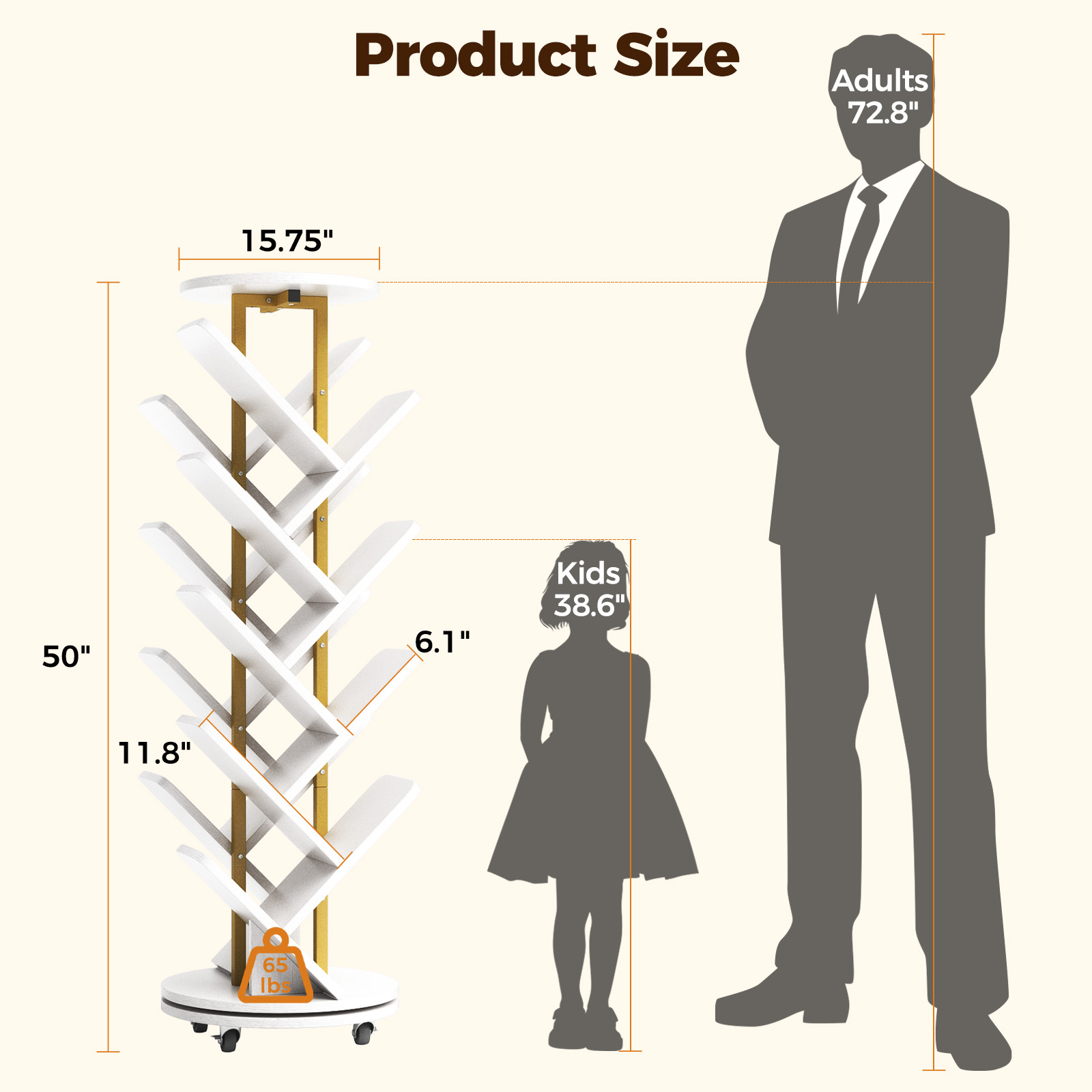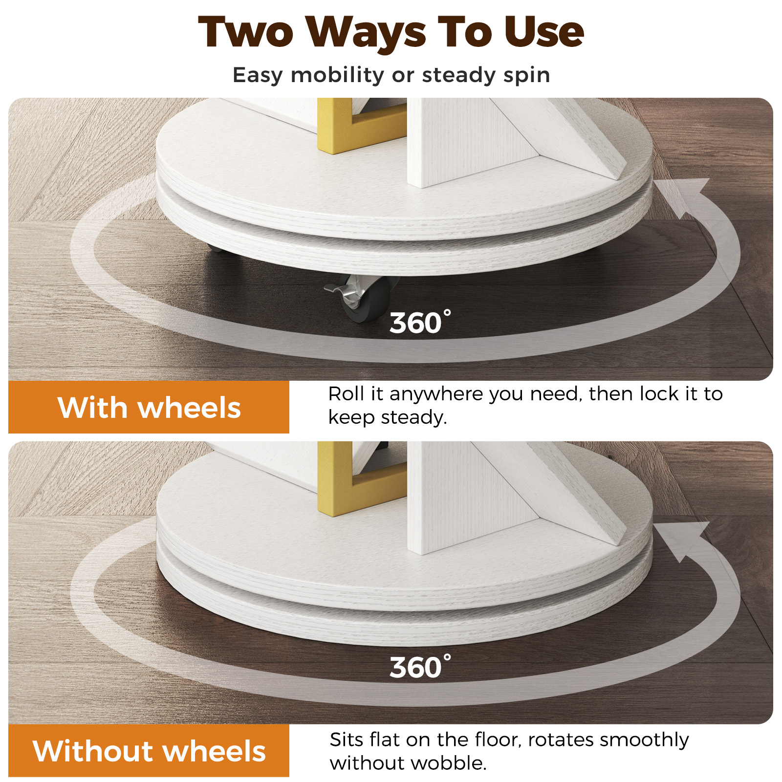 This 16-Tier Tree Rotating Bookshelf combines practical storage and modern style, making it an ideal organizer for any home or office. The revolving bookshelf boasts a slim vertical tower structure that maximizes vertical space while taking up minimal floor area, perfect for small apartments, corners and compact spaces. The generous 16-tier design provides large-capacity storage for various accessories, keeping your space tidy and clutter-free. The spinning bookshelf features a stable and silent 360° rotating base, allowing you to access and browse all items effortlessly without moving. The rotating bookshelf , equips with detachable universal wheels can be easily moved between rooms, and the wheels can be removed for stable stationary placement. Its sleek white finish complements any decor style from minimalist to classic. With versatile storage and functional design, this revolving bookshelf tower brings convenience and order to your daily life.