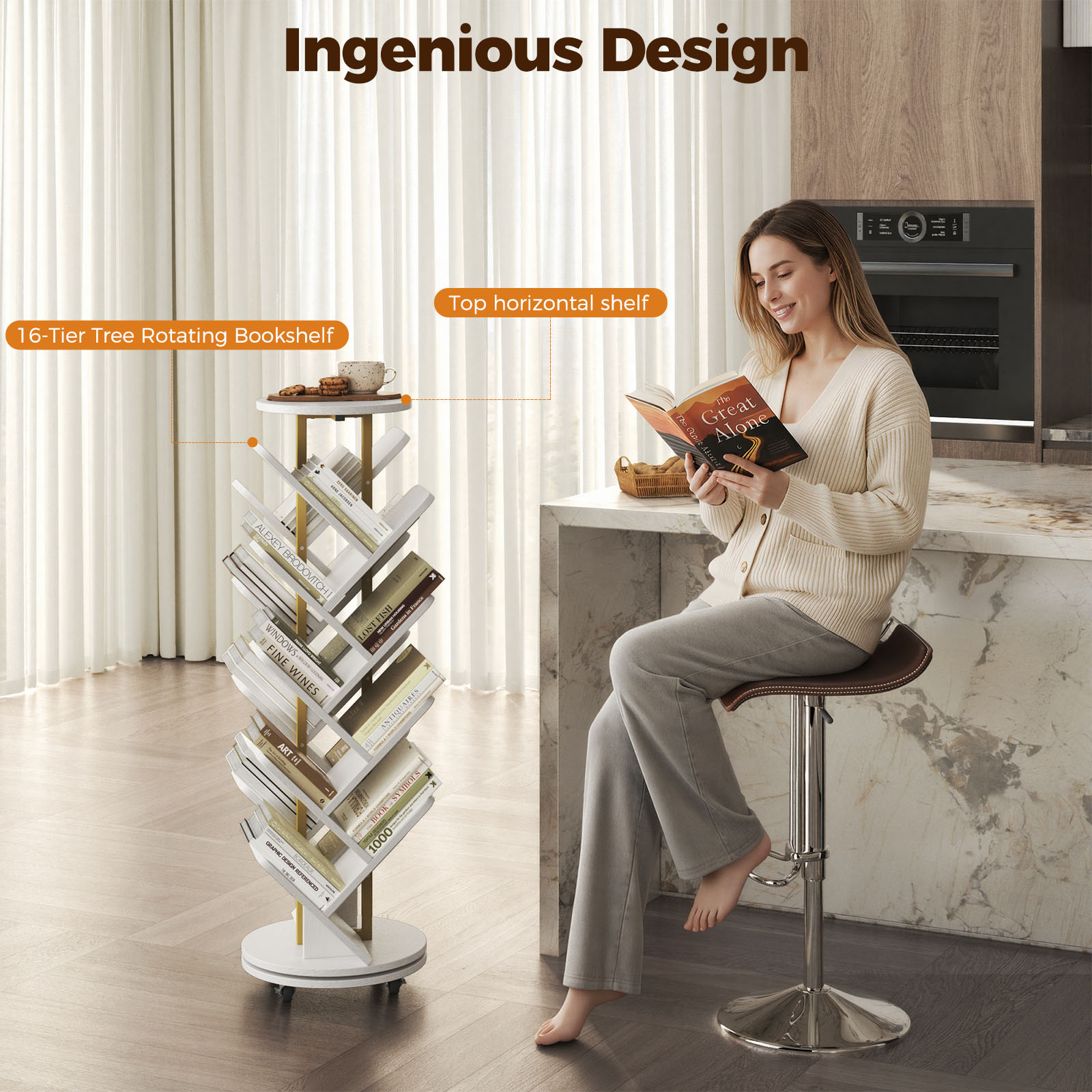 Homrelexa16-Tier Tree Bookshelf, Tall Floor 360° Rotating Standing Book Organizer Shelf for Living Room, Bedroom and Study, White