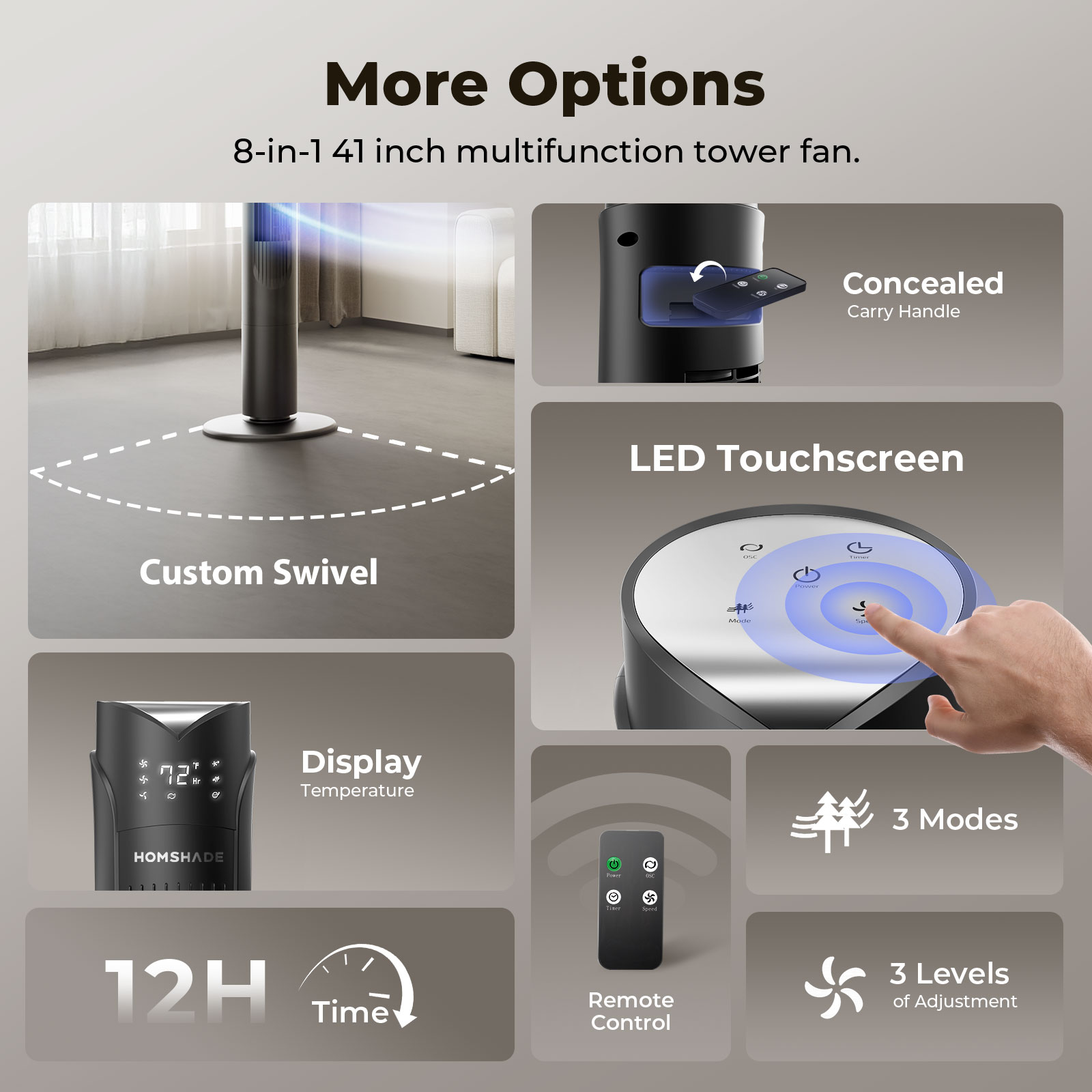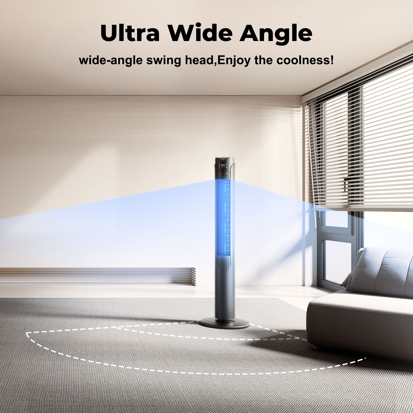 Enjoy a wide range of wind speeds including normal, natural and even sleep winds. The tower fan automatically adjusts the wind speed for your comfort, and the 1-12 hour timer ensures a peaceful night and saves energy.