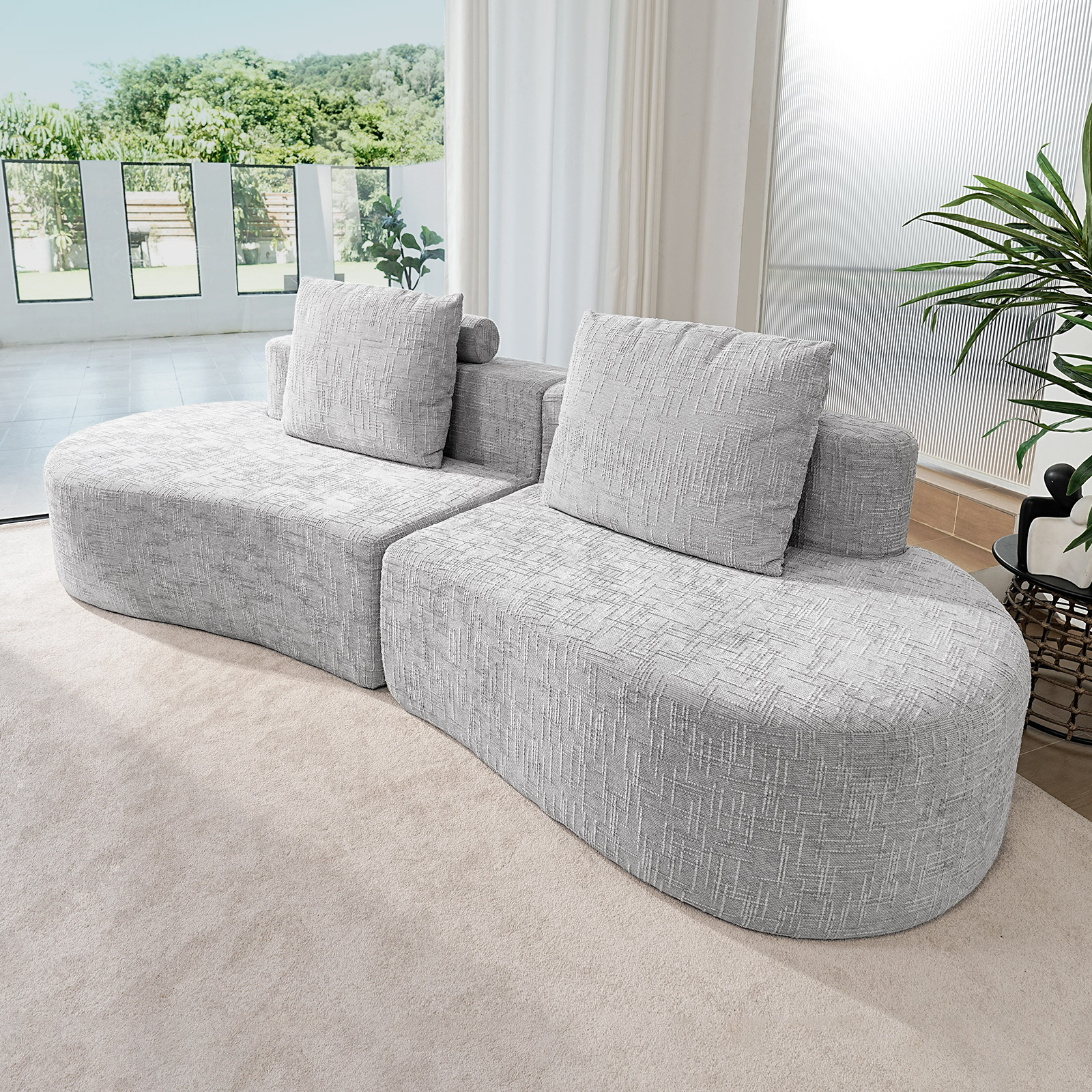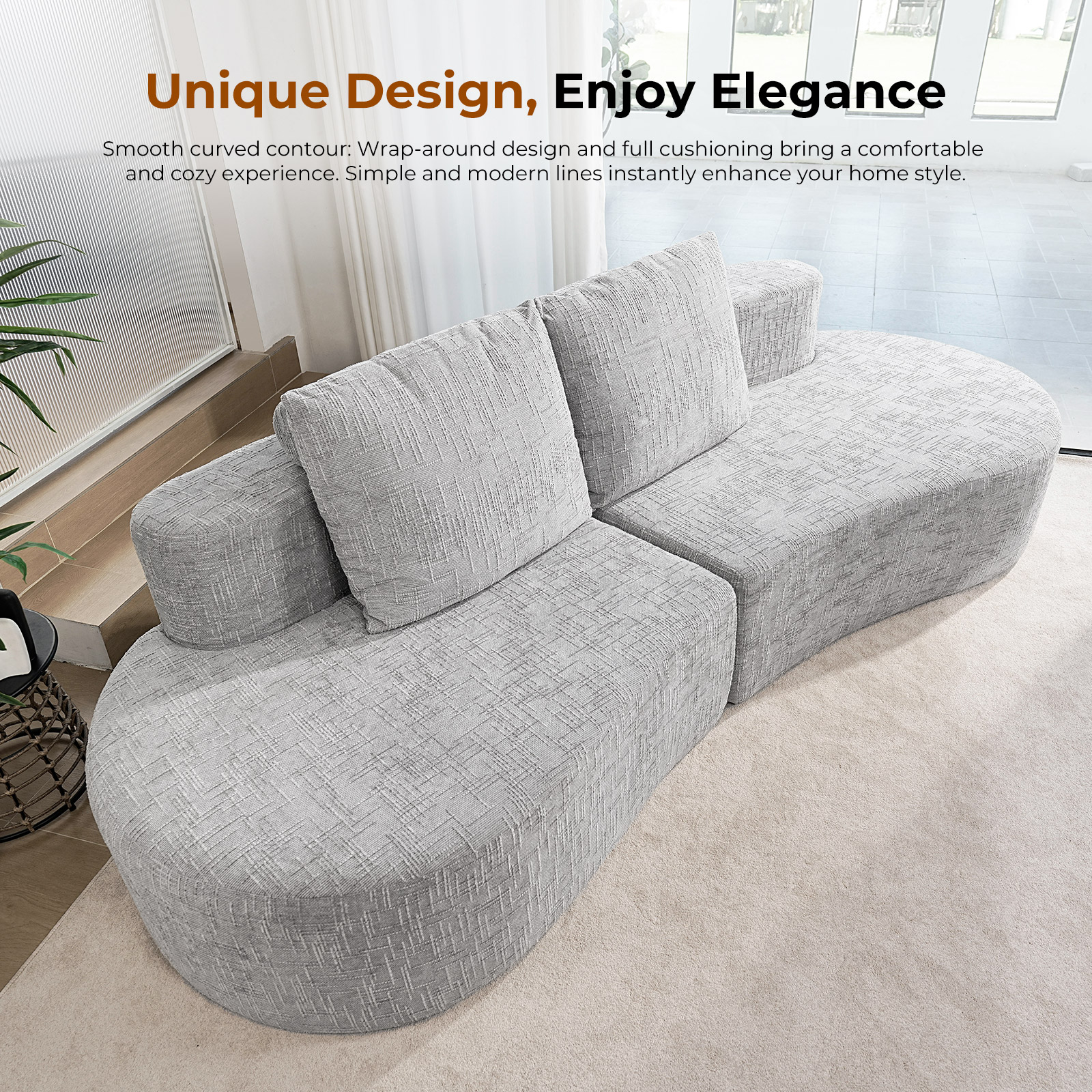 - ELEGANT APPEARANCE&EASY to HANDLE: The crescent-shaped design is elegant and will complement your room. The curved sofa can be compressed, making it easier to move.