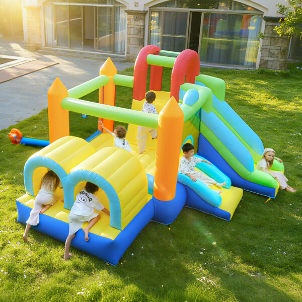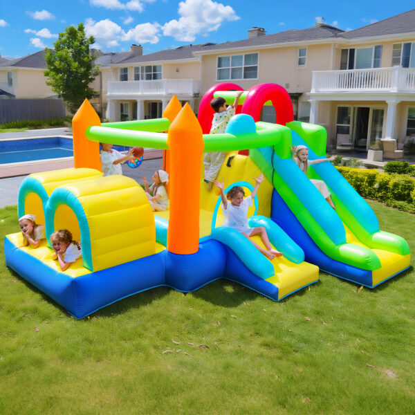 This bouncy castle’s unique design and vibrant colors allow children to play freely and enjoy hours of fun at home.
