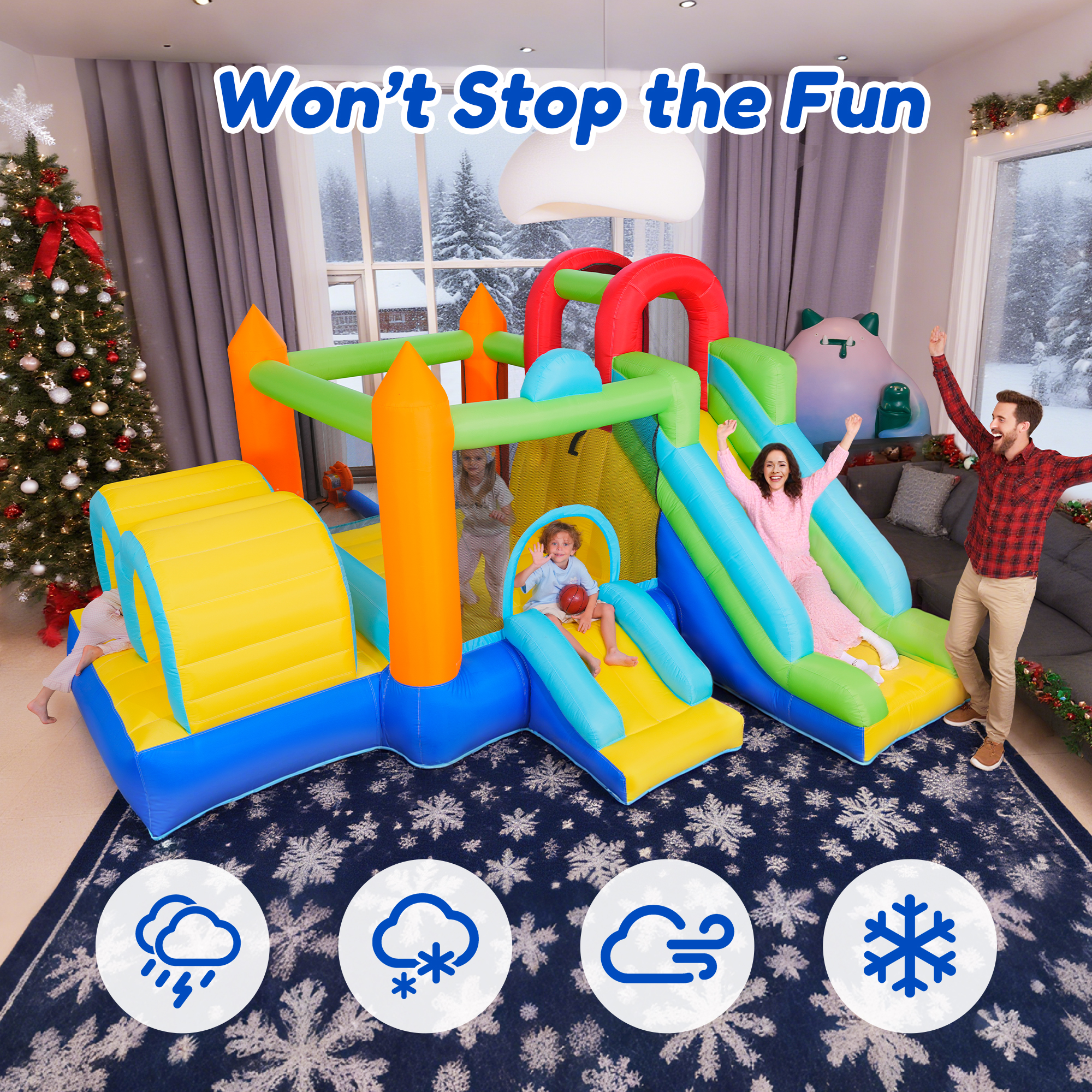 This inflatable castle is weatherproof, whether it’s windy, rainy, thundering, snowy, hail, or even scorching sun. Enjoy leisurely and enjoyable indoor play, regardless of the weather.