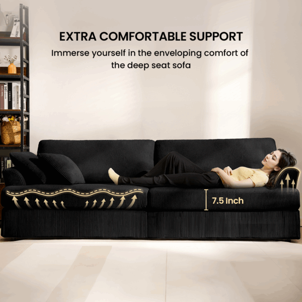 HOMSHADE Sofa,Comfy Couch Sofa with Deep Seat and Thick Cushion, Upholstered Linen Fabric Couch for Living Room Bedroom Office,Black