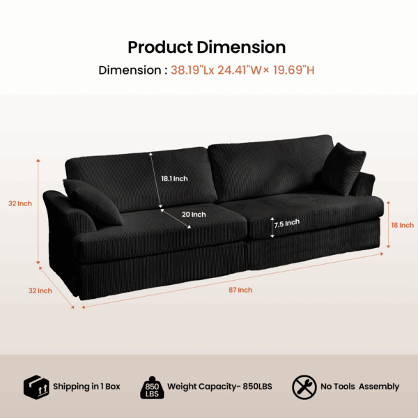 - 🛋️ 【2-Seat Comfort】 – 22″ deep seats with high-resiliency foam