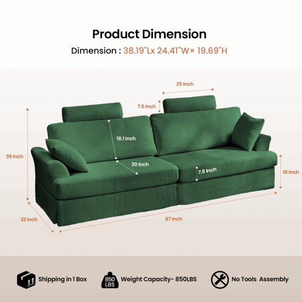 - 🛋️ 【2-Seat Comfort】 – 22″ deep seats with high-resiliency foam