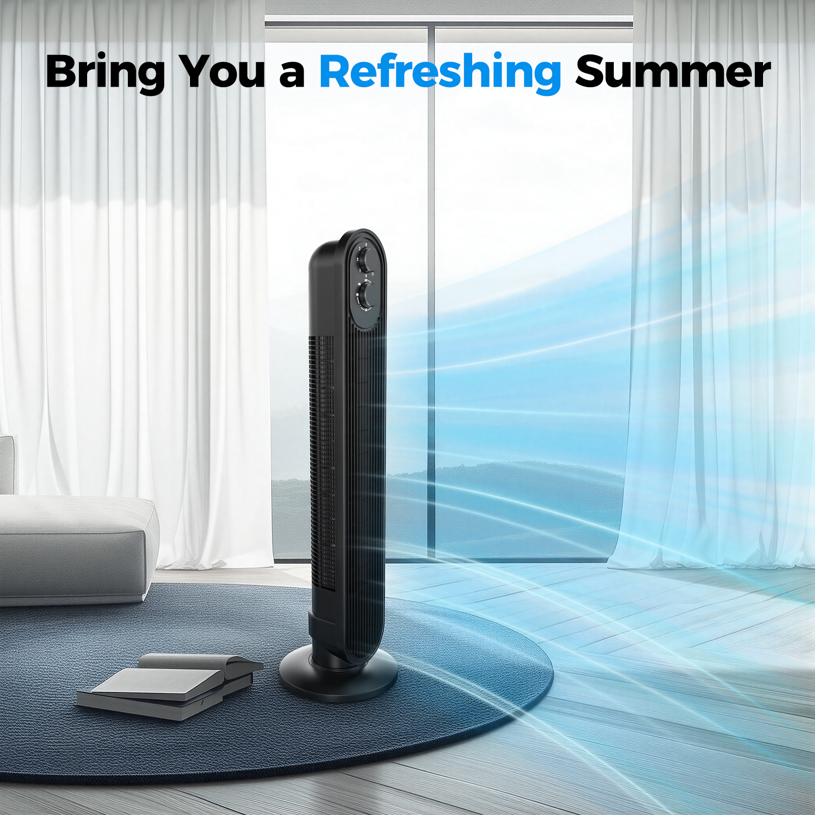🆒HOMSHADE Tower Fan,31″ Oscillating Standing Fans for Home with 3 Speed Settings,360° Dual Knob Control,Auto-off Timer, Floor fan for Home Office, Black