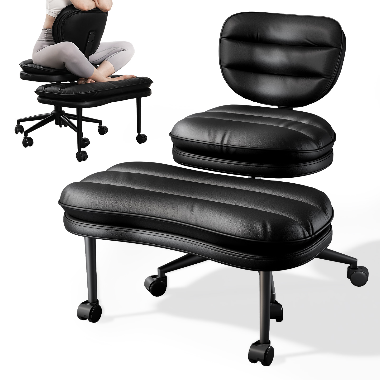 Ergonomic Meditation Chair – Adjustable Swivel Chair for Home Office, Cross-Legged Comfort with Lumbar Support (Black)