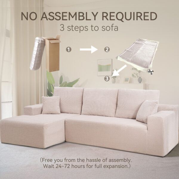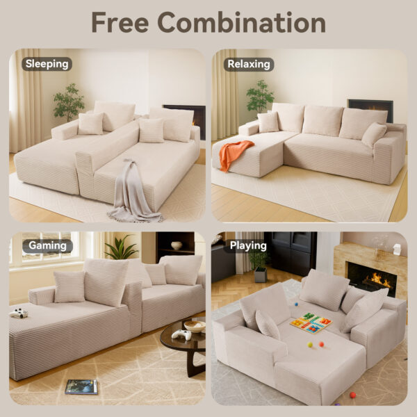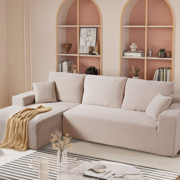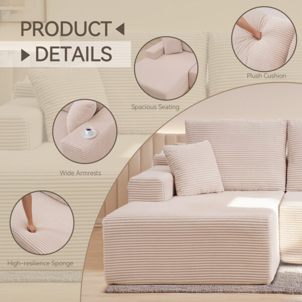 Modern L-Shaped Sectional Sofa for Living Room, 106″ Modular Free Combination Sofa, Oversized 3-Seater Couch with Cushion Backrest, Corduroy Upholstery, Double Foam, No Assembly Required, Beige