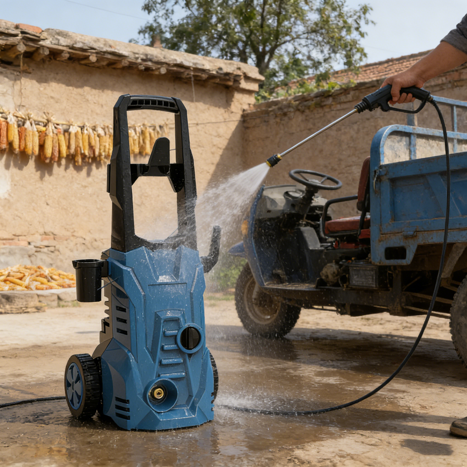 - A 25FT power cord + 23FT high-pressure hose delivers a total operating radius of up to 48 feet. When cleaning large yards, fleets of vehicles, or commercial spaces, there’s no need to switch outlets or move the unit mid-task—significantly boosting efficiency and convenience.