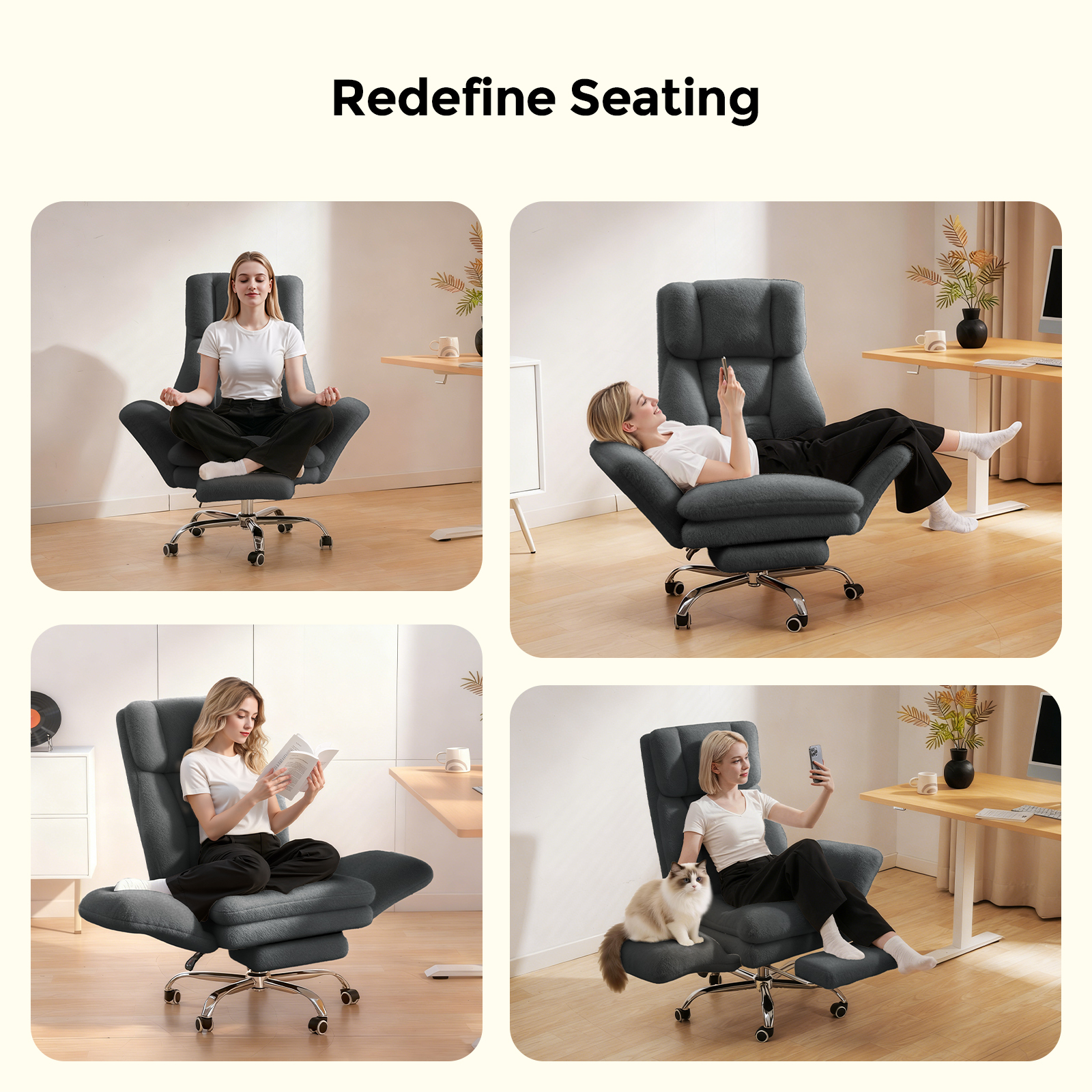 - 【Cloud Plush Ergonomic Office Chair】Crafted with premium plush fabric, high-density foam, and a double-layered seat cushion, it delivers cloud-like comfort and gentle body support. The thickened armrests combine luxurious texture with ultimate comfort, seamlessly blending work and relaxation.