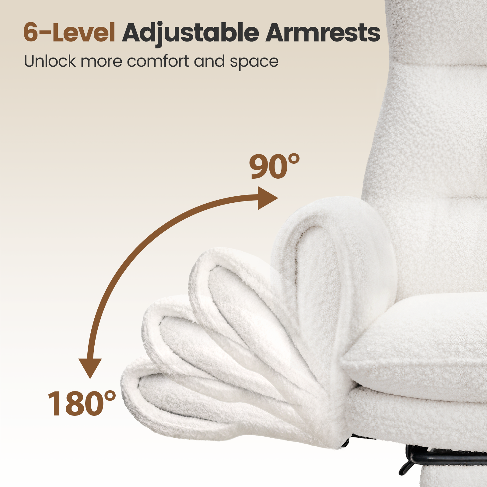 - 【6-Level Adjustable Height With Armrests】The teddy plush office chair has 6-level adjustable armrests, allowing you to customize height based on your desk and sitting posture, supporting arms and shoulders to reduce fatigue during work or gaming.