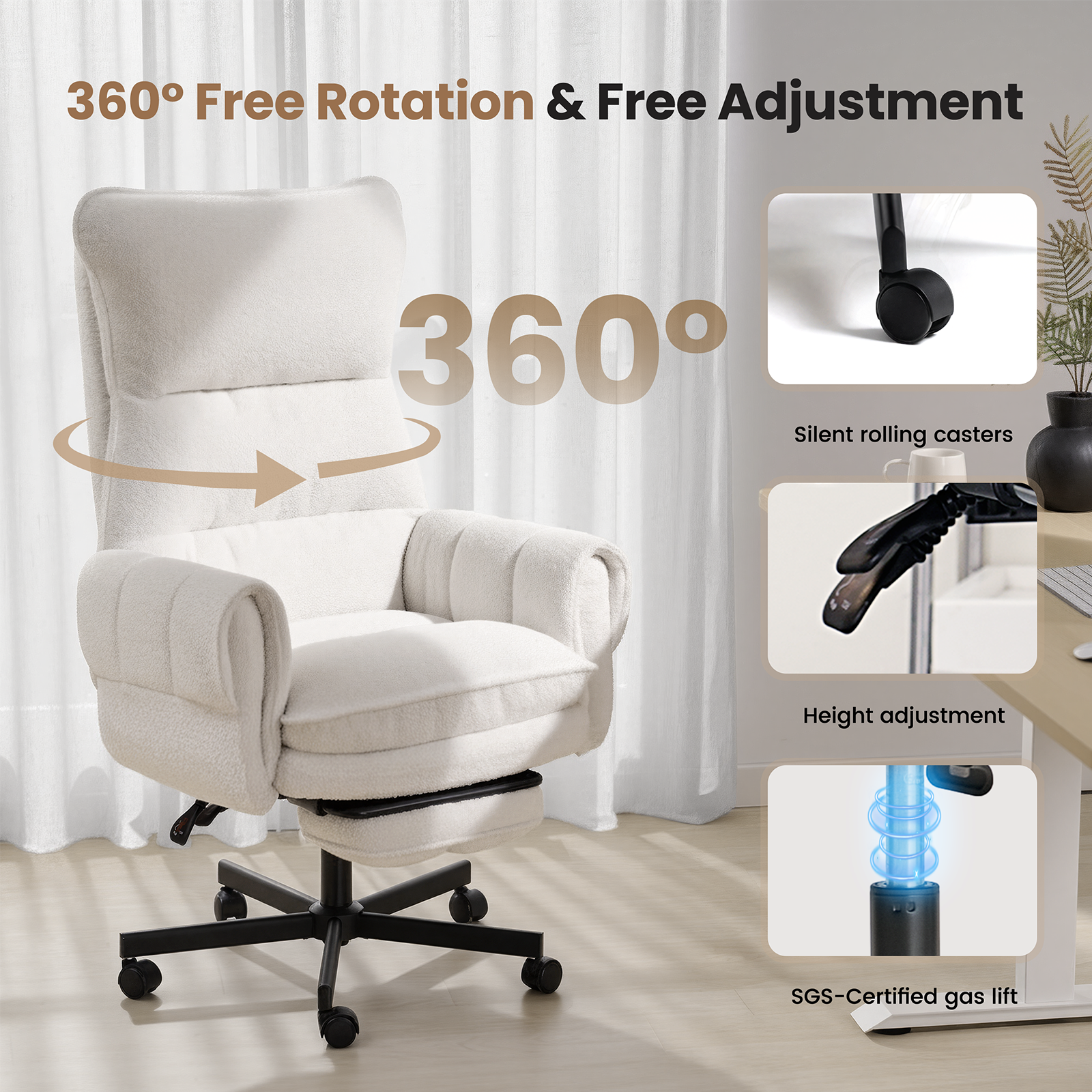 - 【Cloud Teddy Plush Executive Chair】Teddy office chair cradles your body with soft teddy flaux and a double padded foam seat cushion, 400 pound weight capacity, padded armrest for an upscale look and max comfort you can sink into it,this executive chair will improve your work efficiency, work and rest go together.