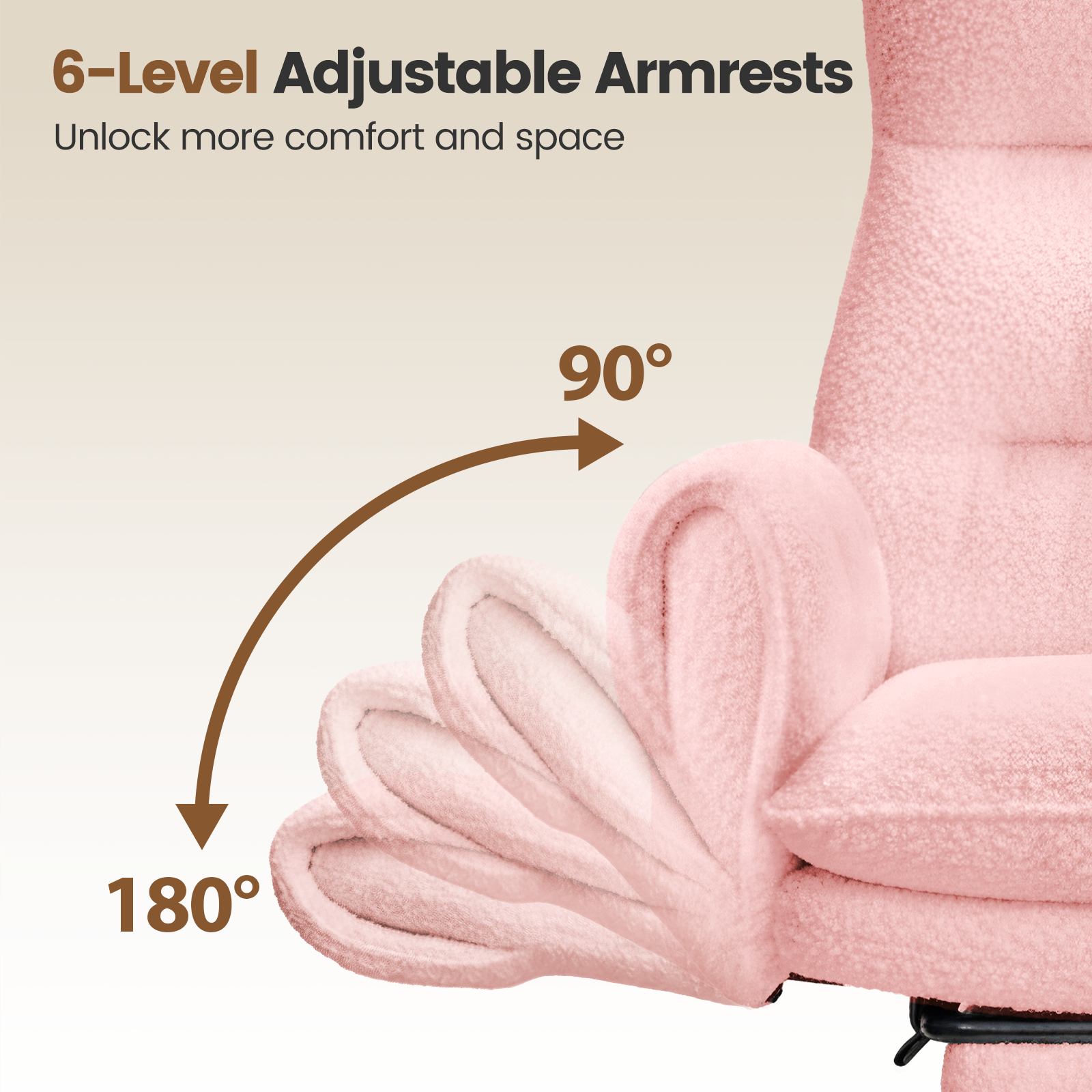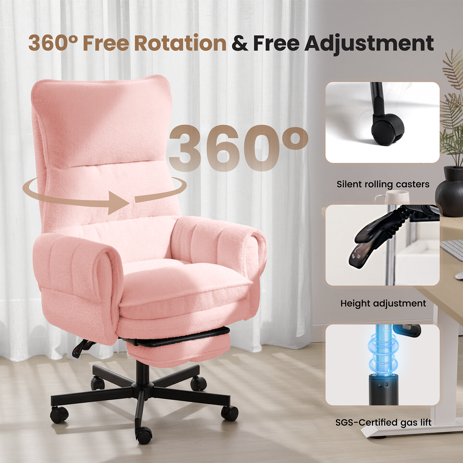 Patbrela Big and Tall Office Chair, Cloud Teddy Plaux Swivel Desk Chair with 6-Level Adjustable Armrests, Home Ergonomic Executive Office Chair, Pink