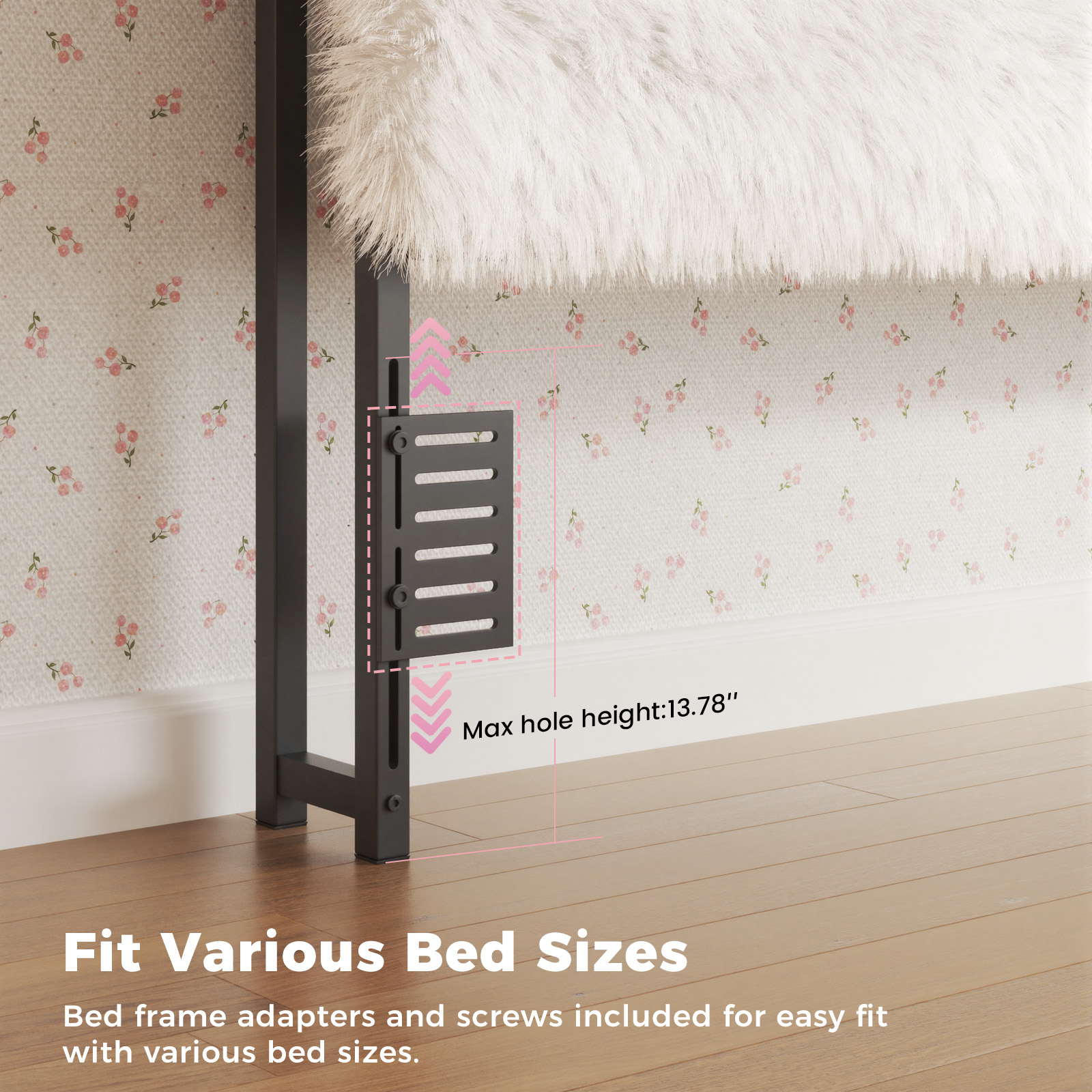 - 【Adjustable Height】 Height is adjustable from 42.1″ to 46.1″, fitting all bed frames or most beds and adapting to various mattress and box spring combinations.