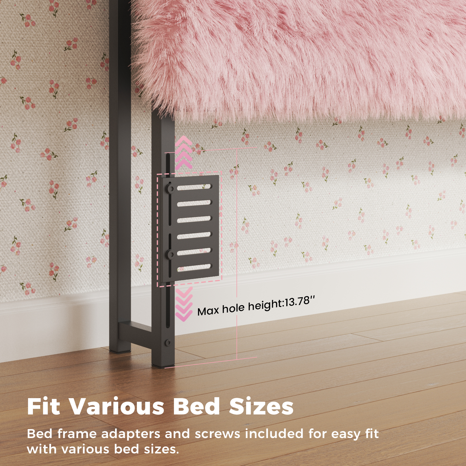 - 【Adjustable Height】 Height is adjustable from 42.1″ to 46.1″, fitting all bed frames or most beds and adapting to various mattress and box spring combinations.