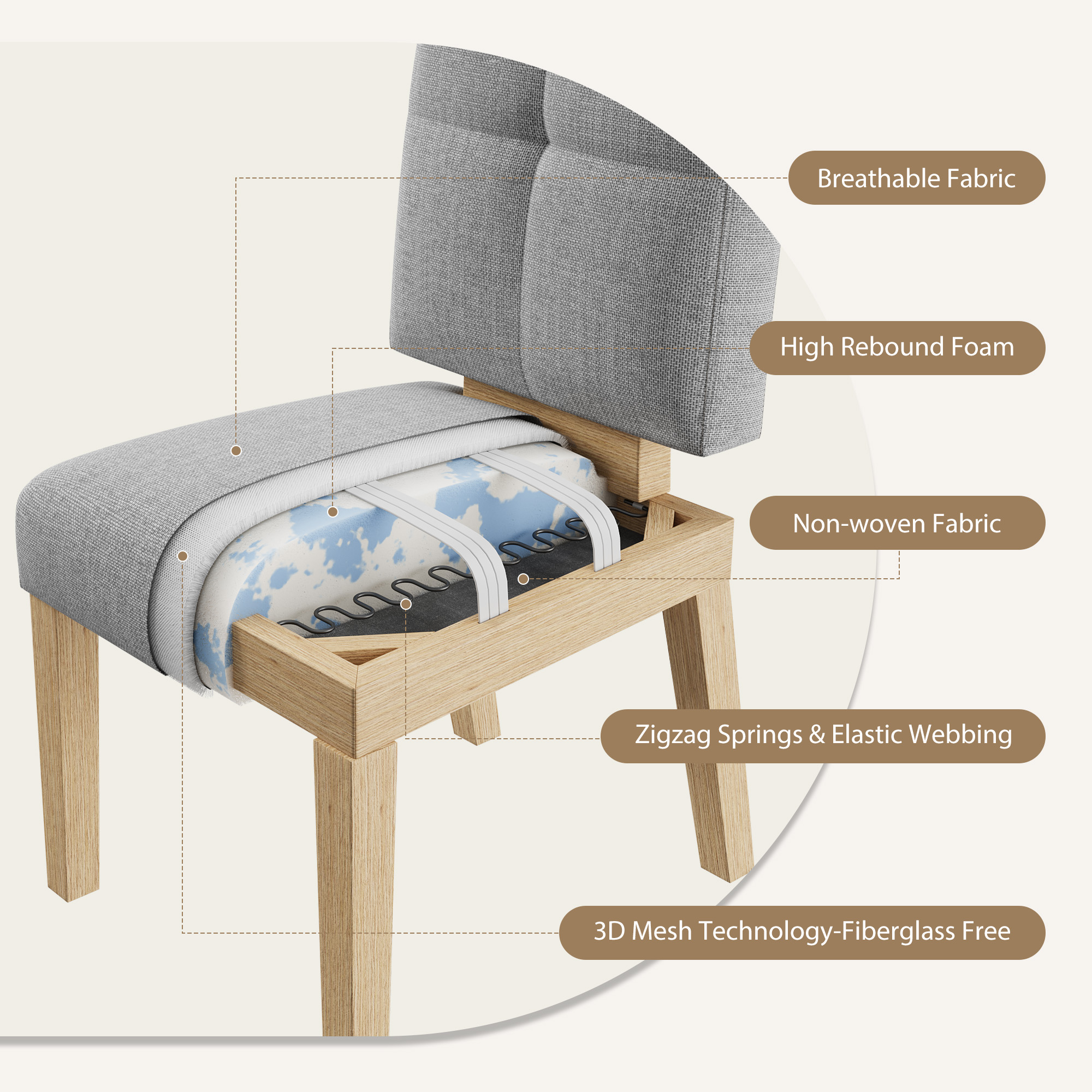 This set of 4 dining chair pieces features an ergonomic comfort design with a contoured backrest for lumbar support and cloud-soft cushions to reduce discomfort during long meals, while each sturdy dining chair is crafted from high-grade solid wood with reinforced joints and a 396 lbs max load for lasting stability; wrapped in understated gray Morgan fabric, this modern dining chair balances elegance and practicality, offers multi-scene versatility for kitchens, dining rooms and restaurants, and enables quick, tool-free assembly with an intuitive structure, making the dining chair an ideal choice for daily residential and commercial use.