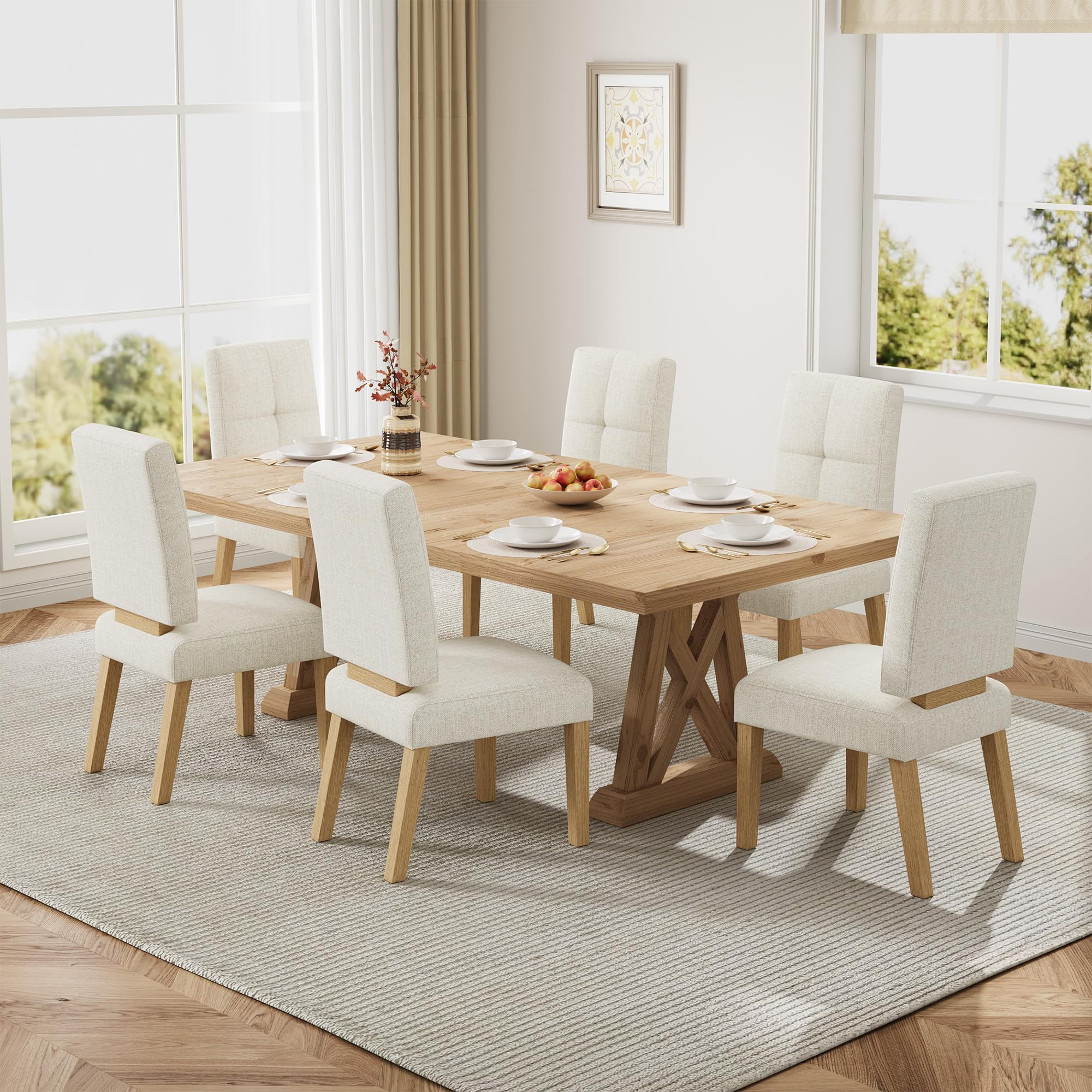 Patbrela Wooden Dining Chairs Set of 6, Dining Room Chairs with Wood Legs, Morgan Fabric &Cloud-Soft Cushion Dining Chairs, Reinforcement Structure Design for Kitchen,Living Room,Restaurant, Easy Assembly, Beige