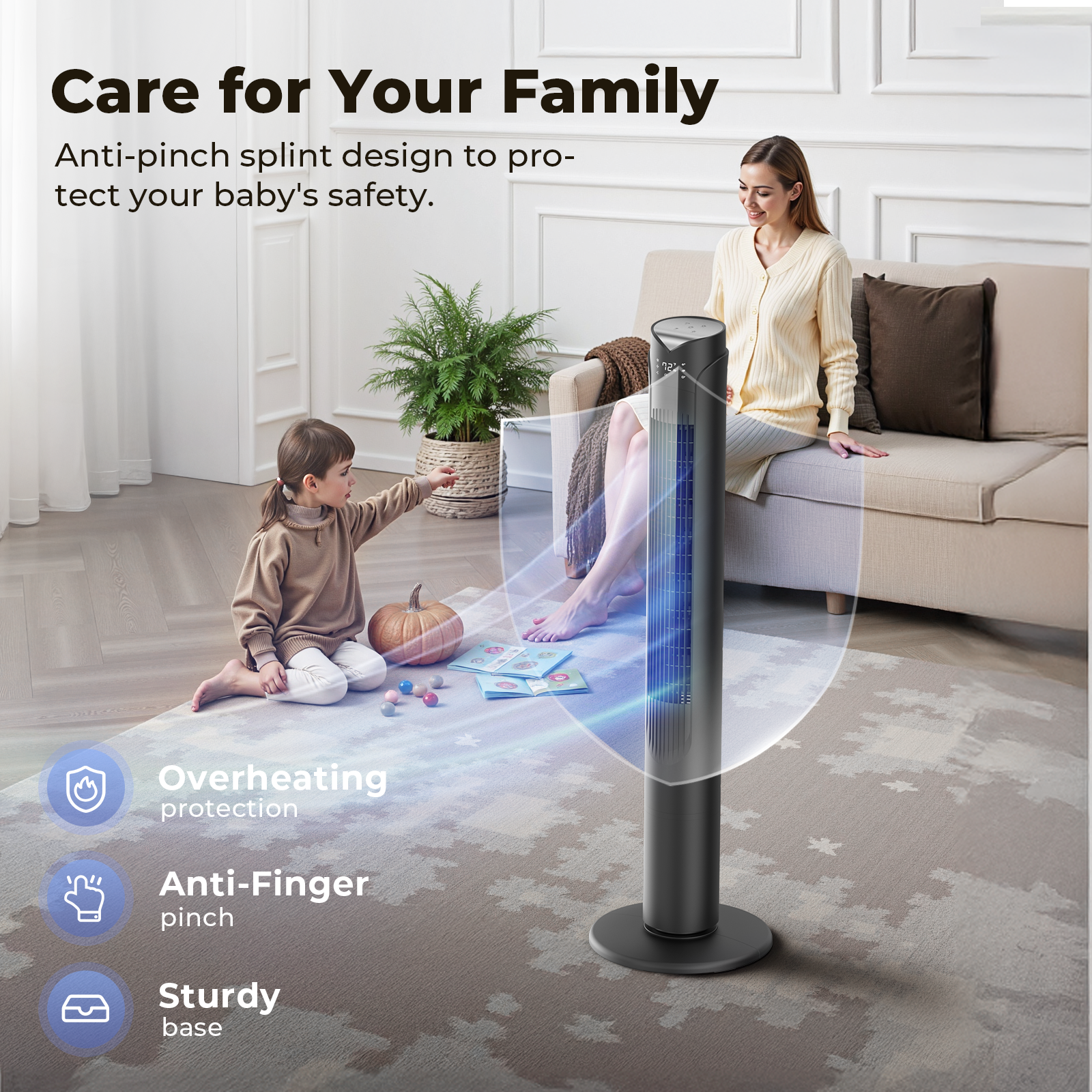 - Intelligent timing,No need to get up in the middle of the night to adjust, the tower fan automatically protects you from the coolness all night, avoiding power consumption all night, environmentally friendly and economical. This is the high-quality sleep that summer should have.