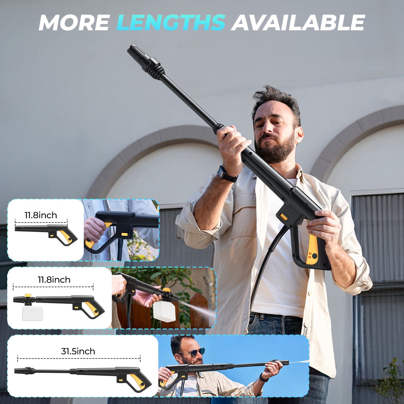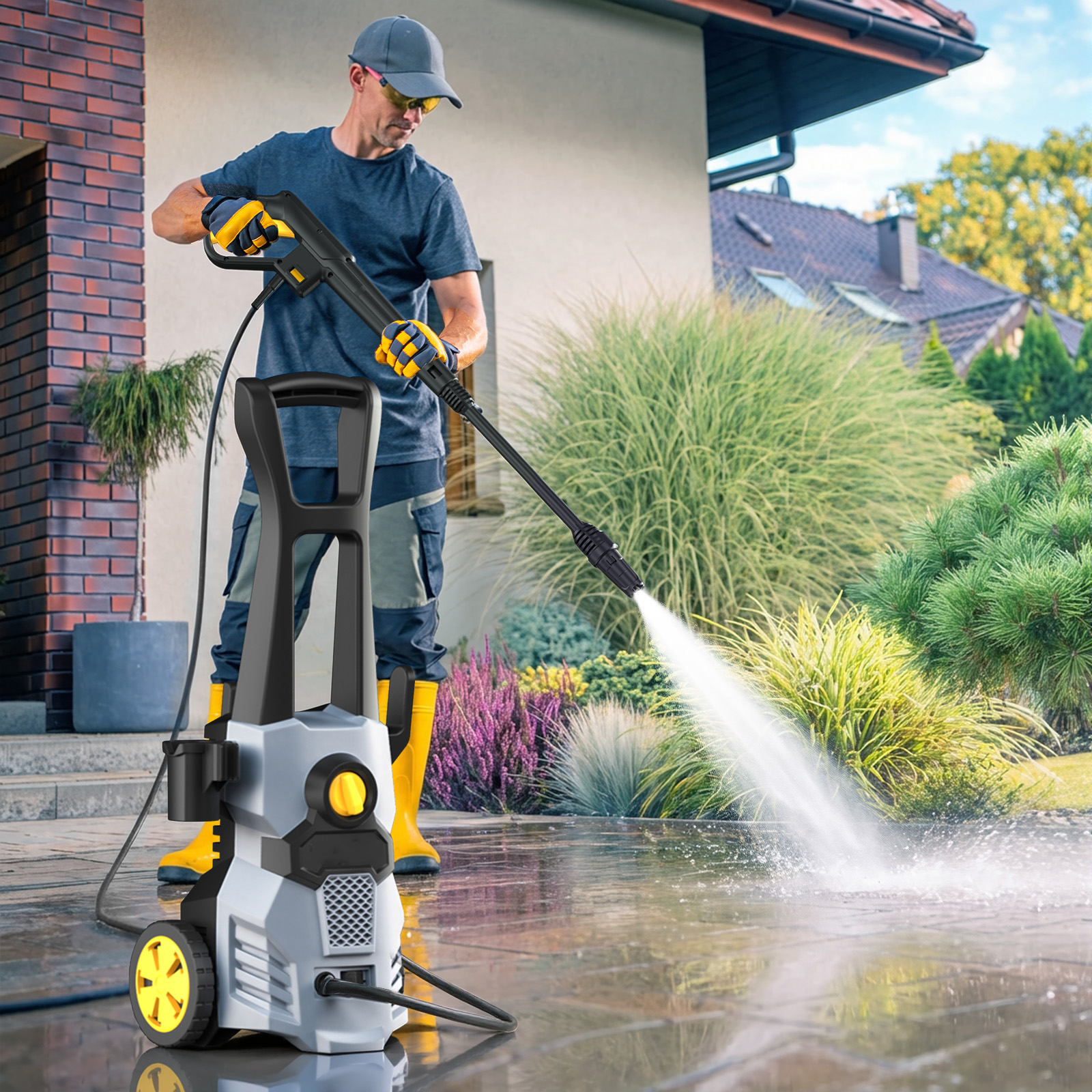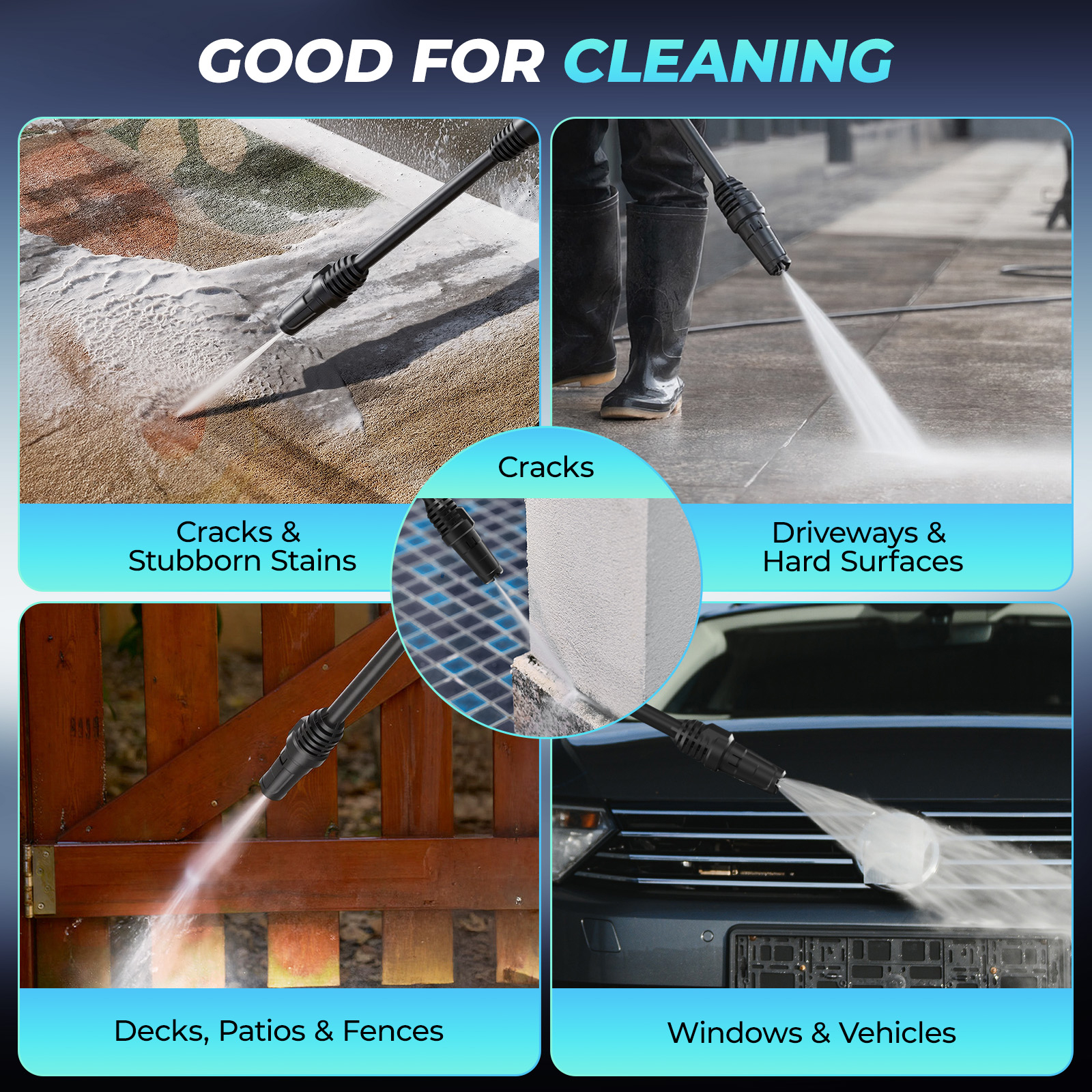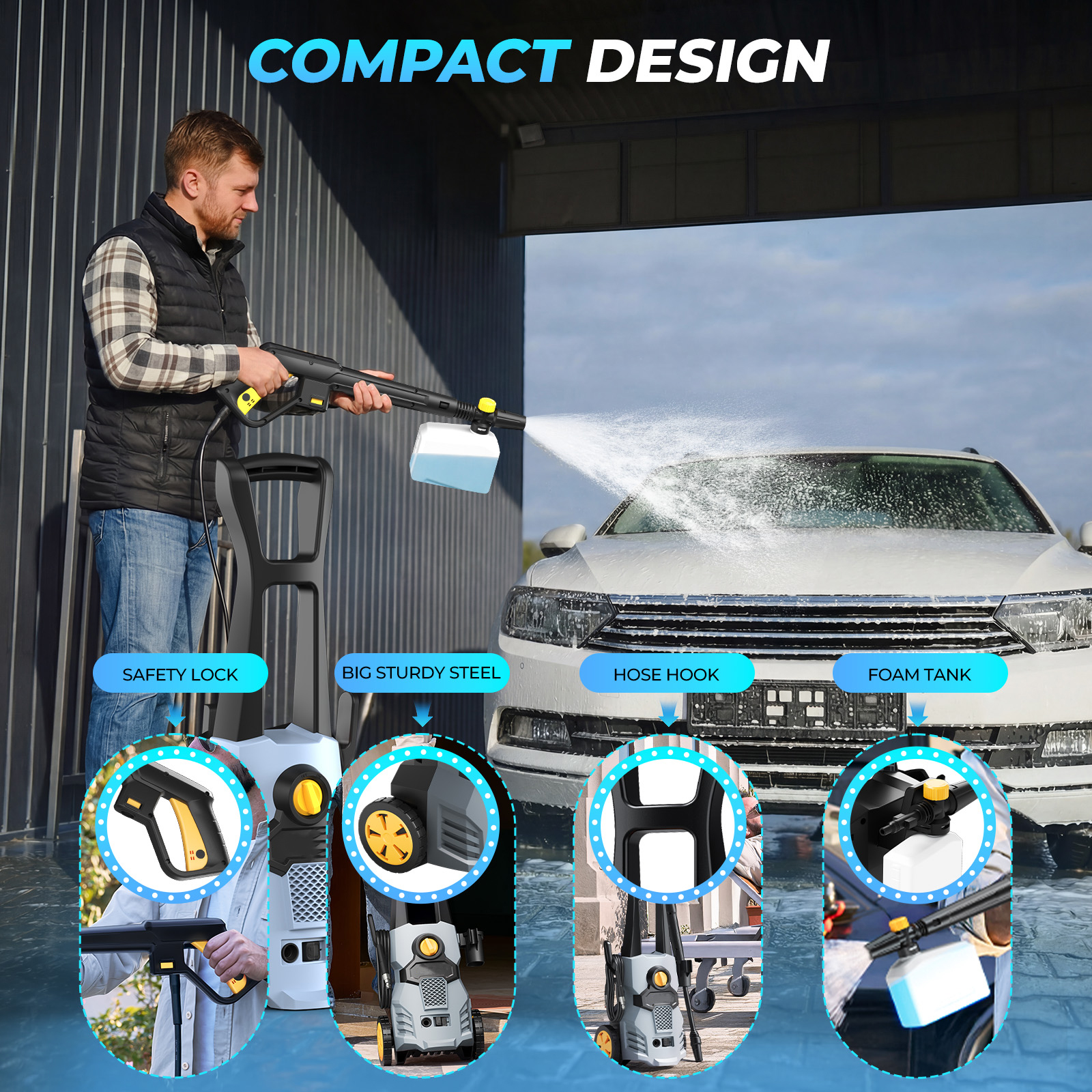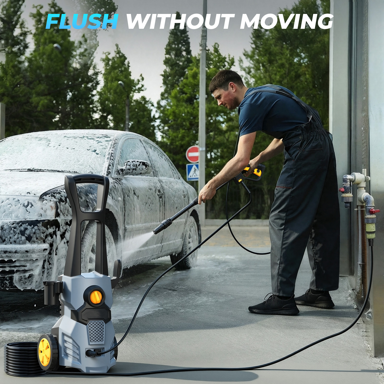 - ✅Water-Saving and Durable: Our pressure washers feature built-in TSS (Total Stop System) for a longer-lasting, more efficient cleaning experience. The pump automatically shuts off when the trigger is released, saving energy and extending service life. A push-button safety lock prevents accidental activation of the spray gun.