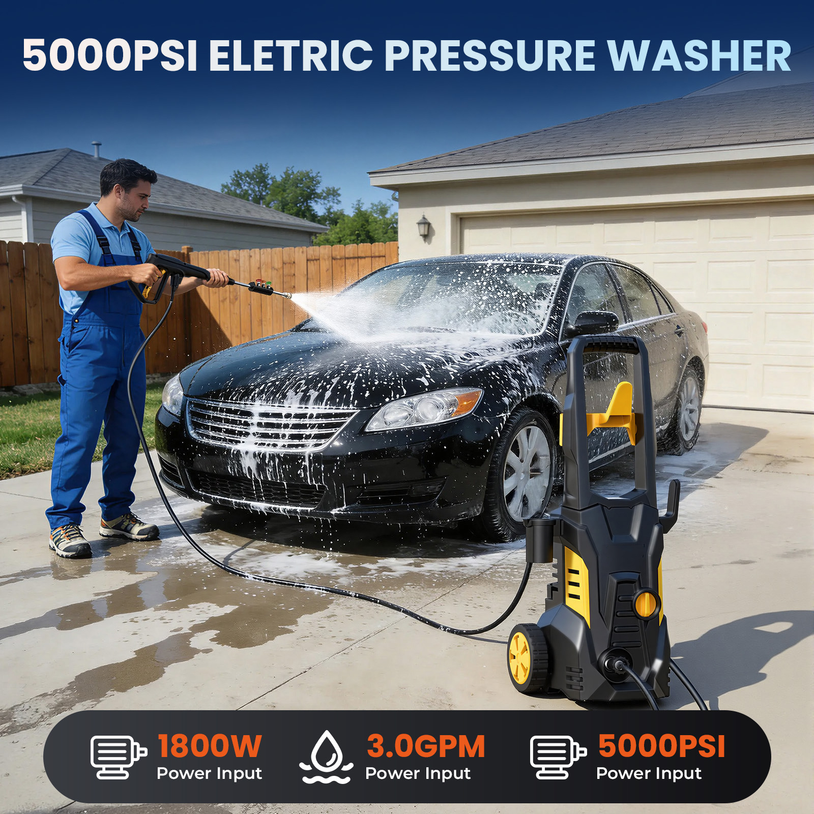 - This electric pressure washer delivers a cleaning performance of max 3000 PSI, ensuring an effective removal of dirt, grime, and stains from various surfaces.