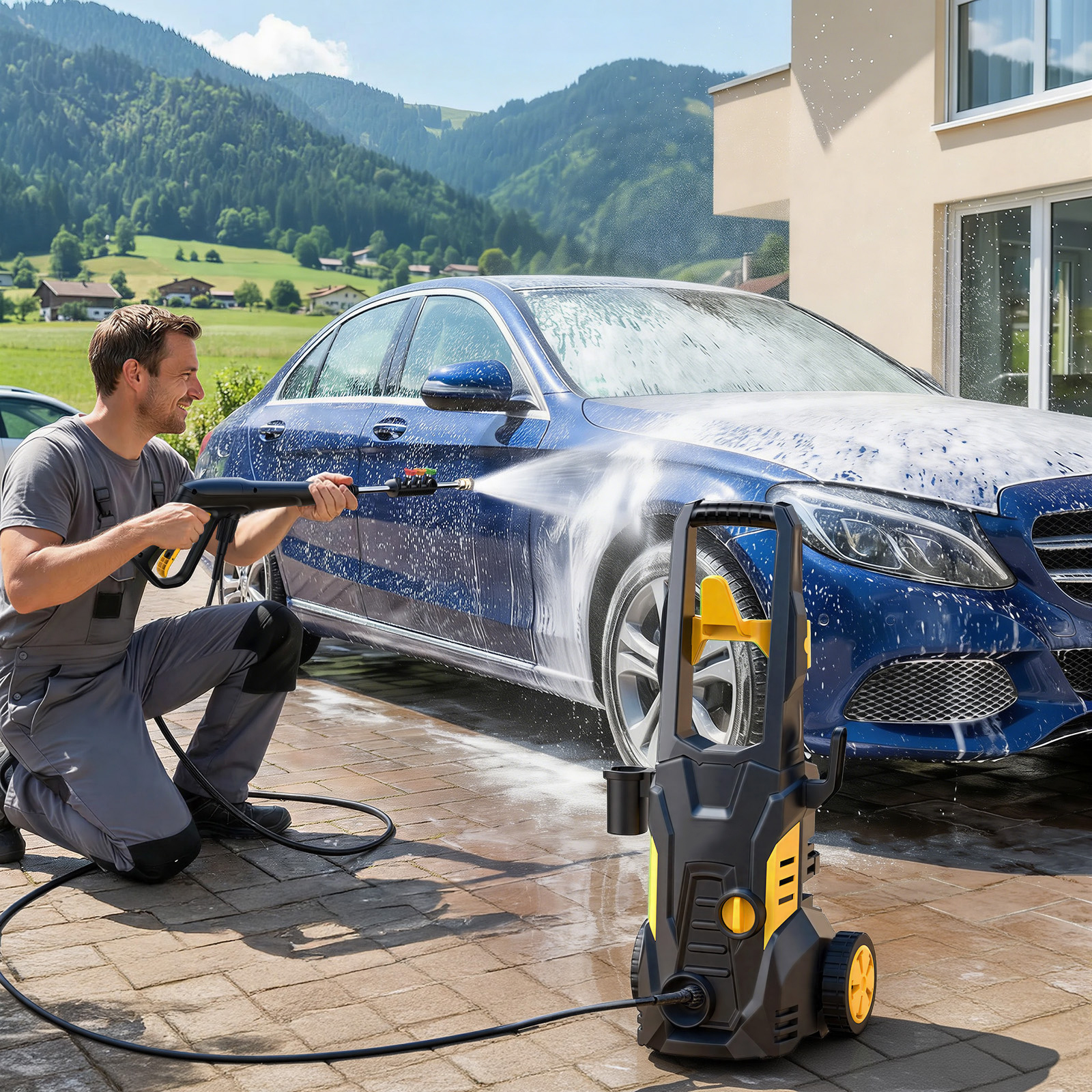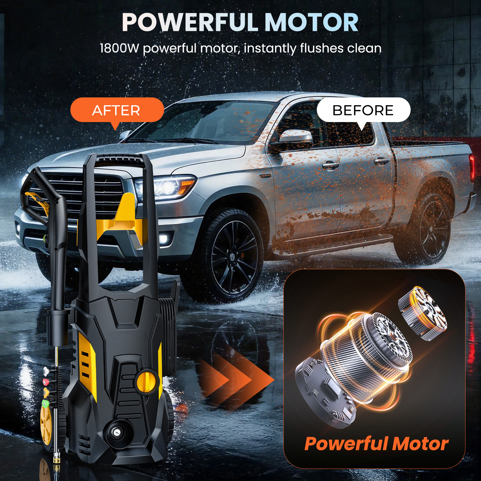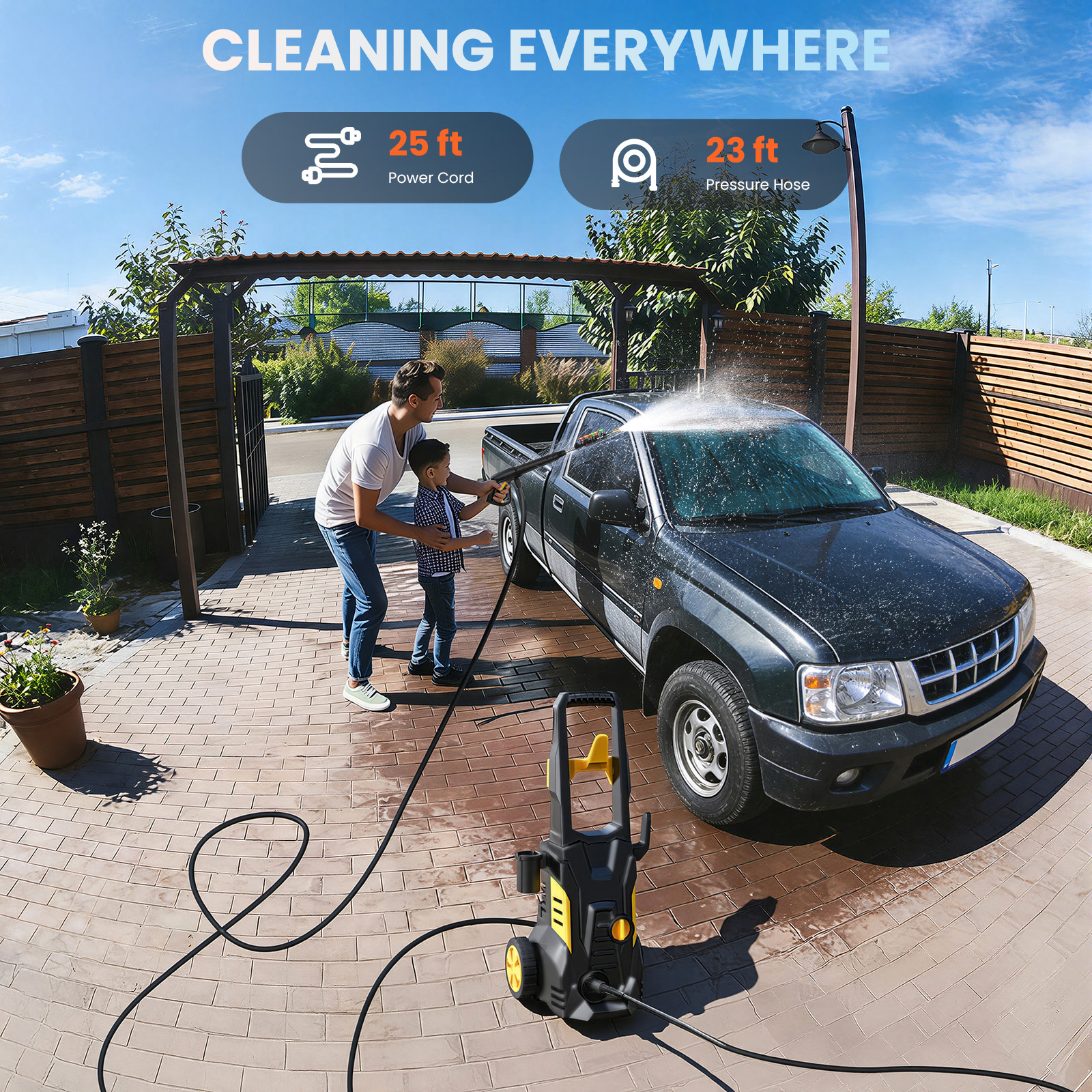- Easy to Plug and Go: Say goodbye to all them complicated setups; With its intuitive design, our pressure washers can be put together in a jiffy; They’re good for all sorts of folks, whether you’re a homeowner or a pro; Just flick that power switch, hook up your water, squeeze that trigger, and you’ll be spick and span in a flash; We even throw in some simple instructions to lend you a hand