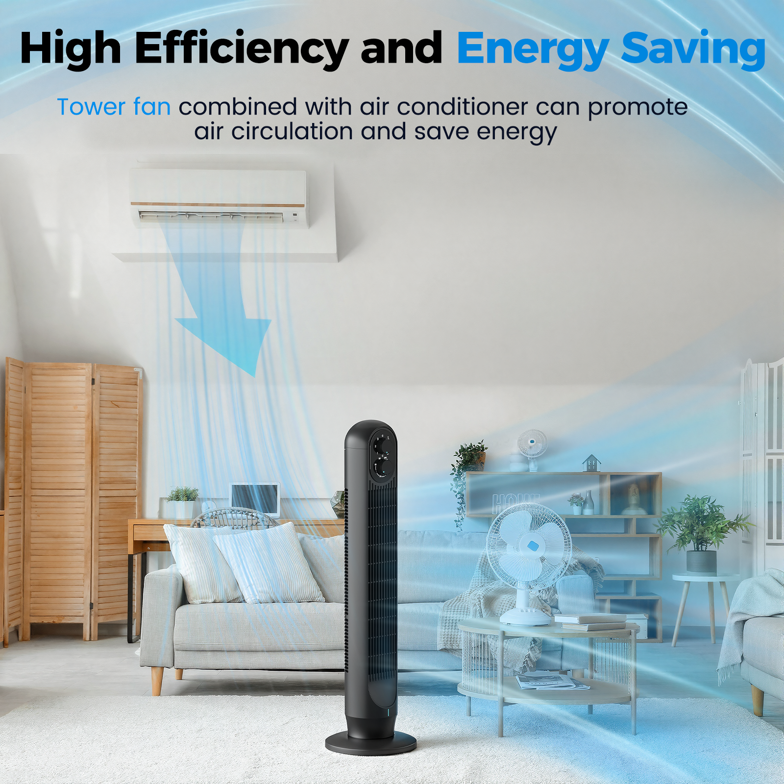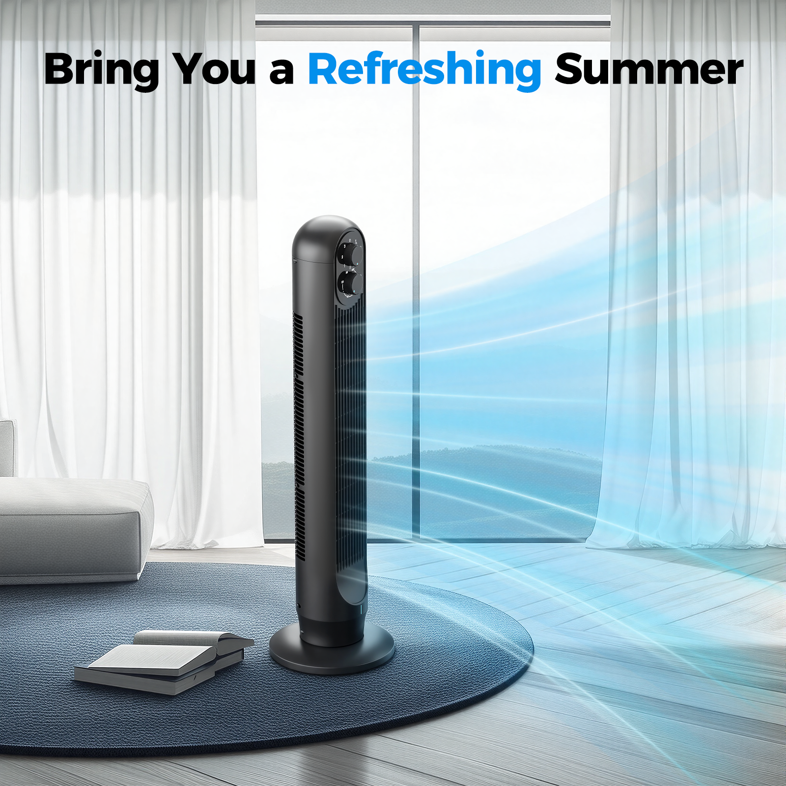 With three speed levels, this tower fan adapts to diverse cooling demands. Whether you need a soft breeze for a lazy afternoon or a strong gust to cut through sweltering heat, it’s got you covered.