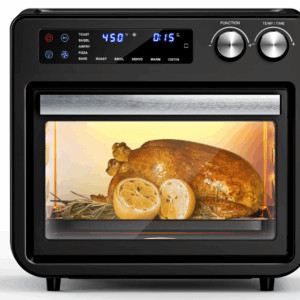 26QT Stainless Steel Air Fryer Oven With Rotisserie 1800W Air Fryer Toaster oven, 10-in-1 Digital Display Compact Cooker with Easy View Windows,Black