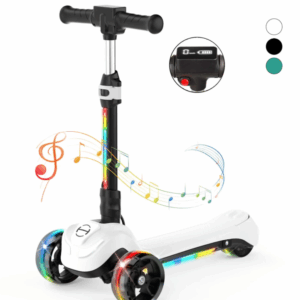 3.5″ 3-Wheel Electric Scooter for Kids with LED Lights (Ages 3+ to 110 lbs) – White